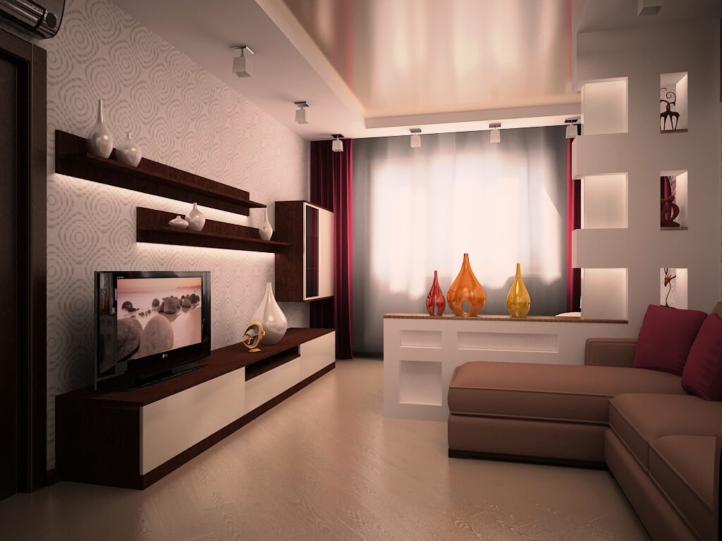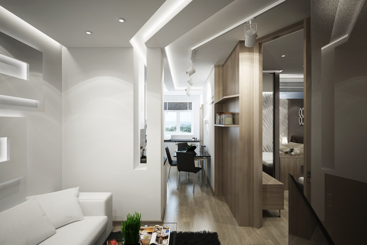 Étant donné que tout réaménagement avec une augmentation du nombre de pièces réduit la surface, de sorte que ce n'est pas si visible, vous devez acheter les meubles appropriés et les organiser correctement. Dans la plupart des cas, il vaut la peine de regarder des canapés pliants plutôt que des lits complets.