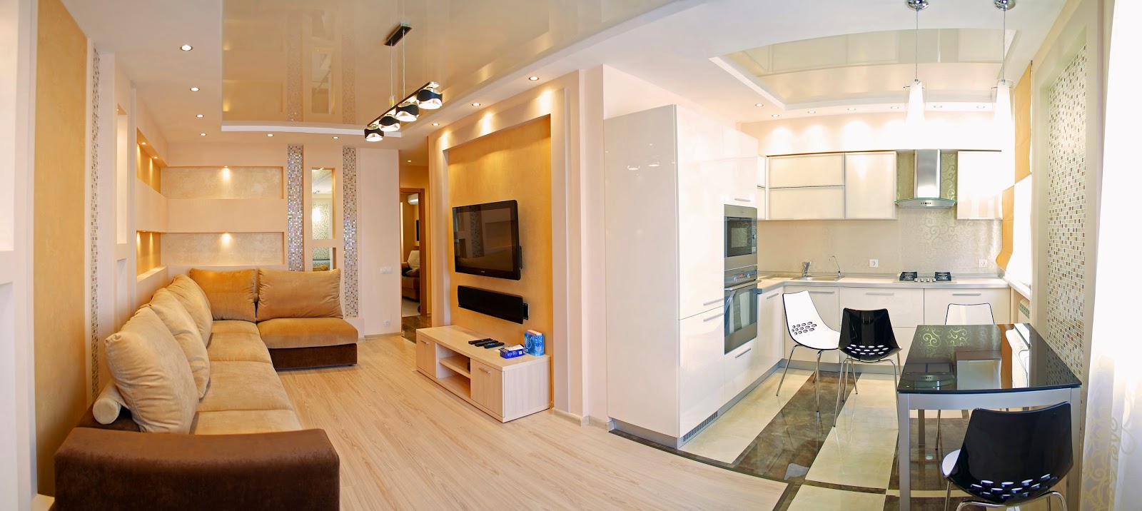 Après avoir combiné la cuisine avec le hall, vous obtiendrez un salon-cuisine confortable et fonctionnel