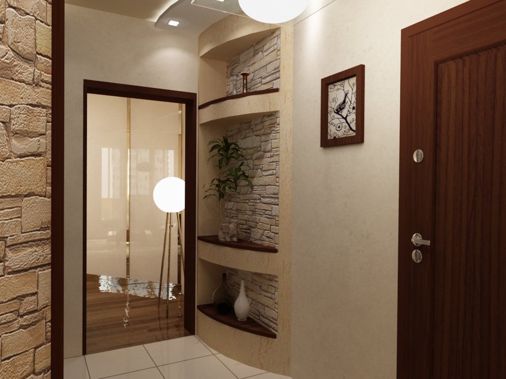 Dans ce cas, la liberté d'action est déjà plus grande. Il sera possible d'agrandir simplement les pièces en organisant un salon-salle à manger, alliant le hall et la cuisine. L'espace restant est divisé entre deux pièces. Mais un tel réaménagement nécessitera la démolition maximale de tous les murs intérieurs, si la loi le permet, c'est-à-dire s'ils ne sont pas porteurs.
