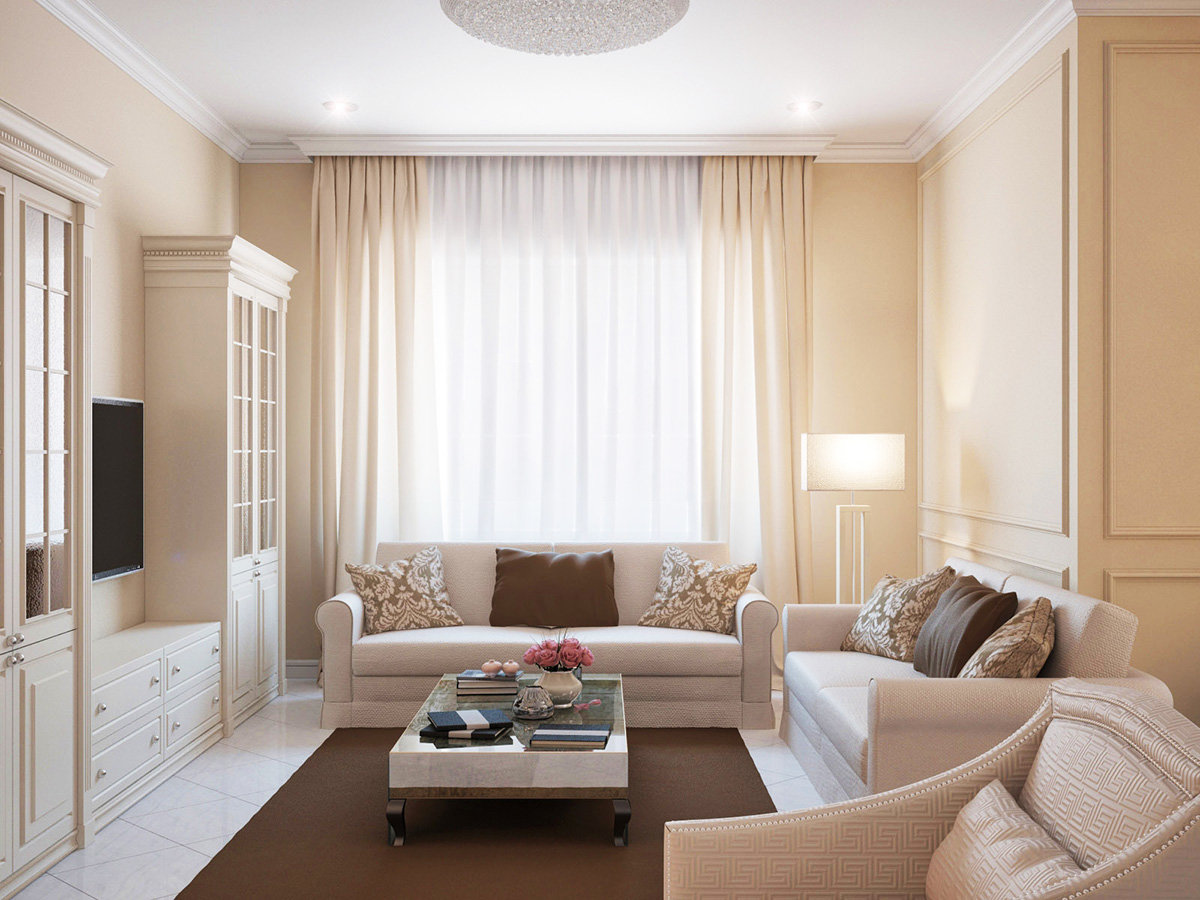 L'intérieur d'une petite pièce doit être basé sur des couleurs claires, surtout s'il n'y a pas de lumière naturelle.