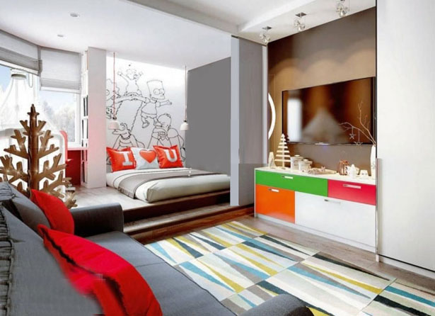 - 50 photos design d'un appartement 1 pièce pour une famille avec un enfant: