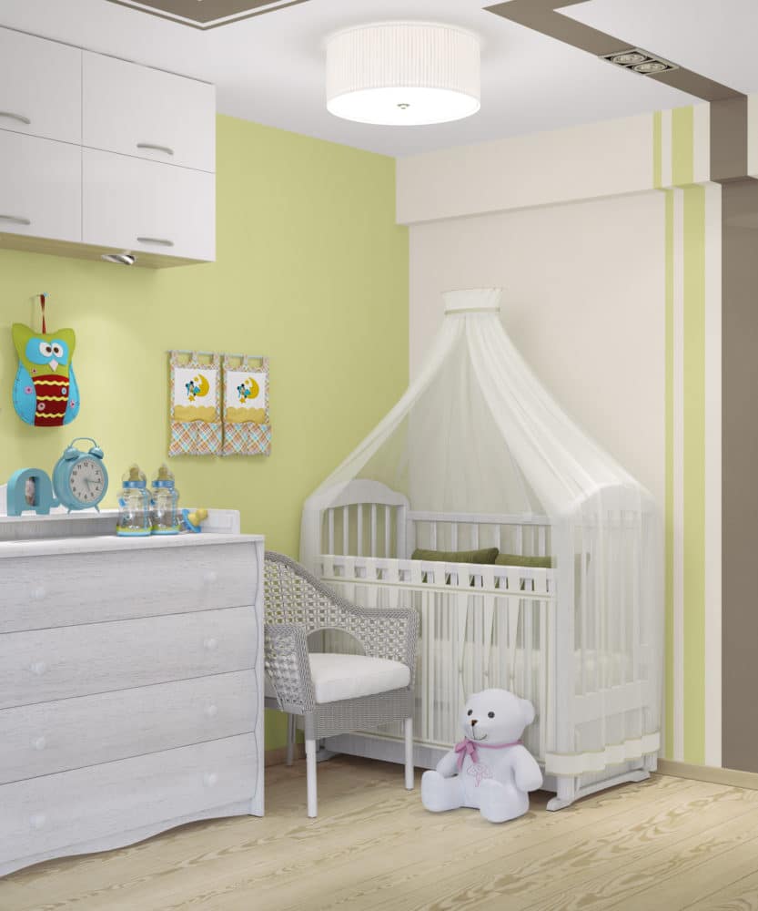 Jusqu'à un certain temps, le bébé a besoin de très peu d'espace pour un berceau et une commode, qui peuvent en même temps être utilisés comme table à langer.