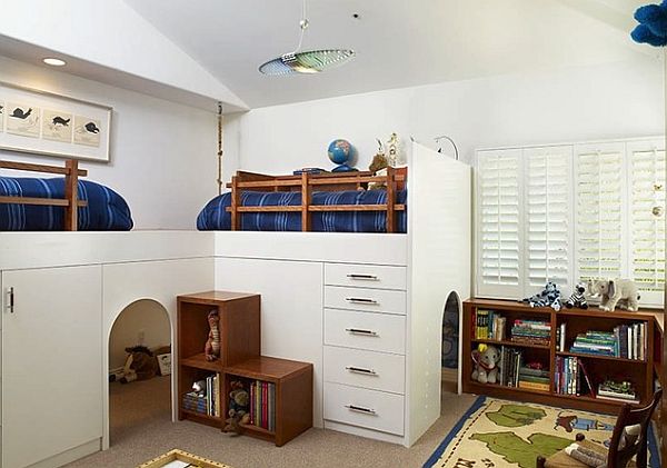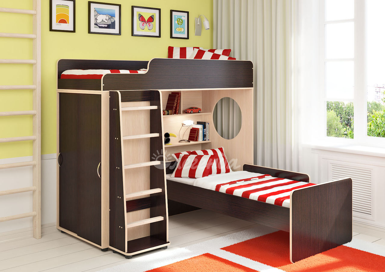 Pour les enfants du même sexe et avec une légère différence d'âge, une option de lits superposés convient. Et en général, la nécessité d'un coin séparé ne sera pas ressentie aussi vivement.