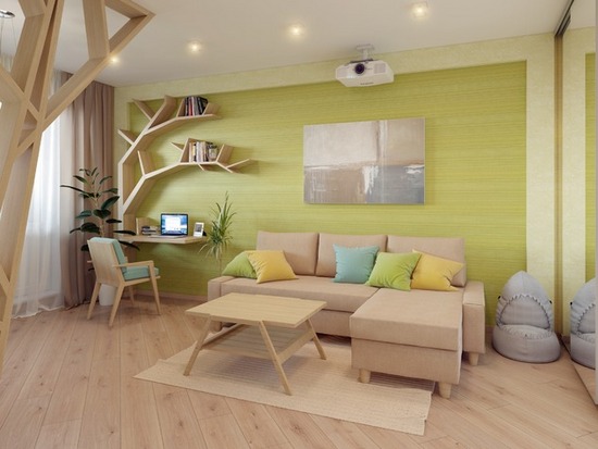 Pour se détendre c'était confortable non seulement pour les adultes, mais aussi pour les enfants, aménagez un espace enfants dans le salon.