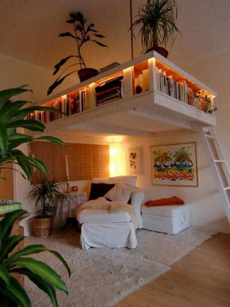 Dans un espace horizontal, le zonage d'une pièce de cette manière est avantageux dans le cas de mètres carrés considérables, mais si la hauteur du plafond le permet, ce type de zonage est parfait pour créer un étage supplémentaire.