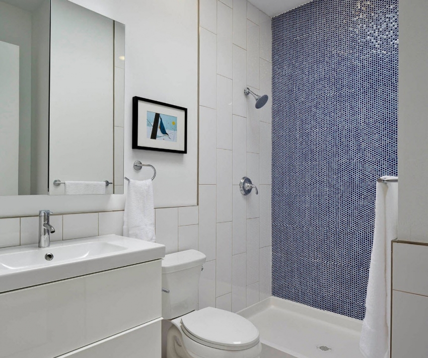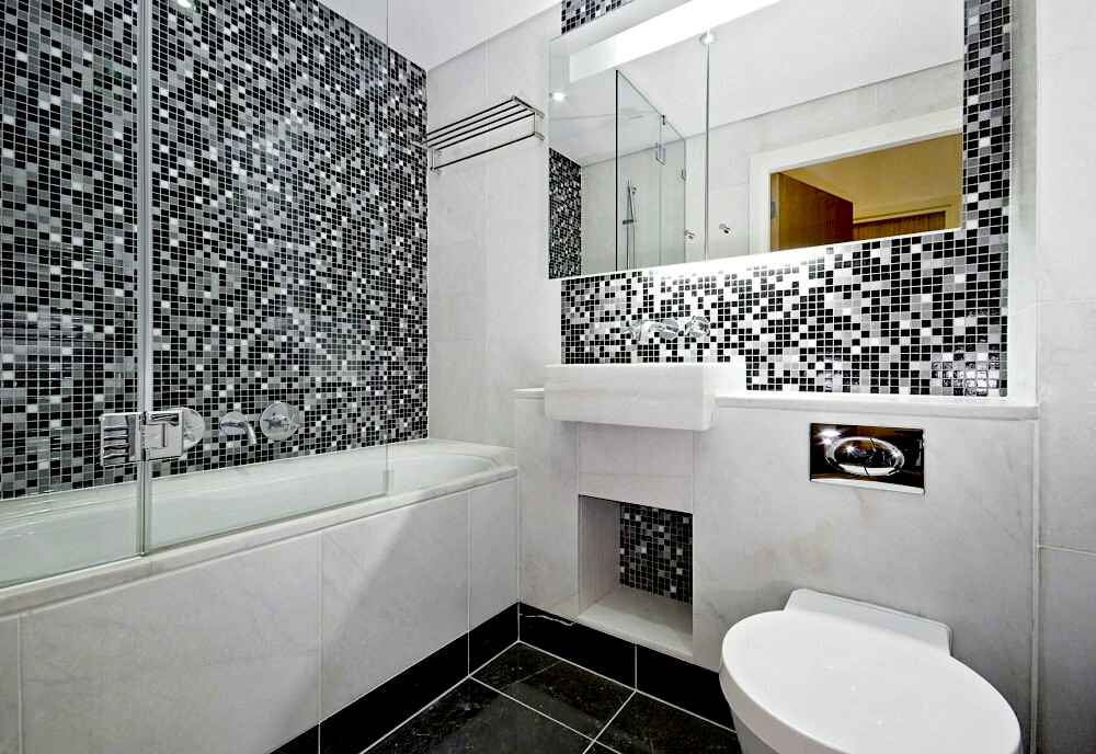 À l'aide de carreaux de mosaïque, vous pouvez mettre en évidence les murs d'accent dans la salle de bain