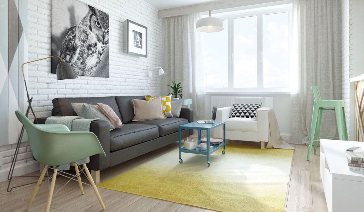 Conseils pour choisir l'éclairage et le mobilier dans un appartement de deux pièces de 70 m²