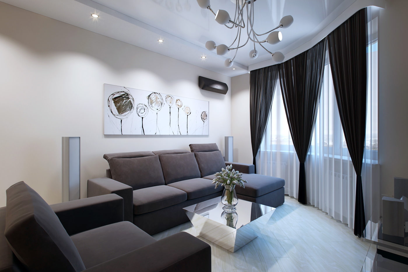 La couleur des rideaux doit être combinée avec le rembourrage des meubles rembourrés