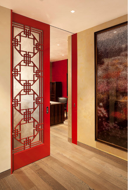 La conception intérieure traditionnelle implique une combinaison de portes de couleur avec un sol
