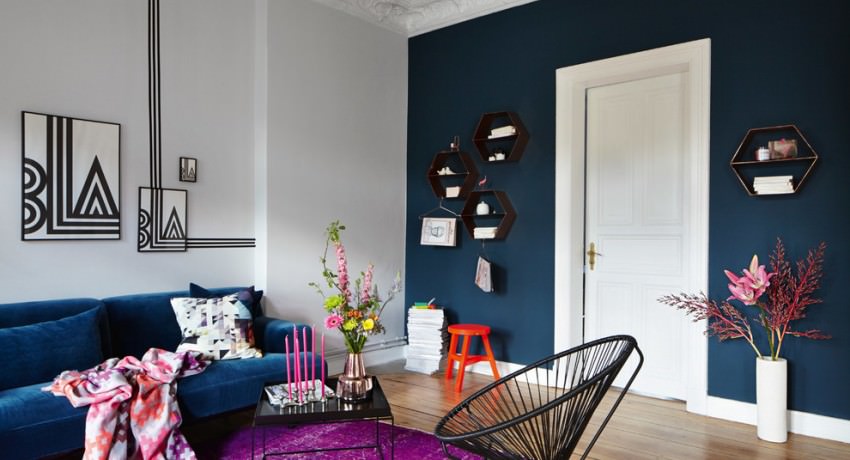- Couleurs vives. Si les propriétaires souhaitent rendre la pièce unique, originale et élégante, vous pouvez utiliser des couleurs flashy et insolites. Par exemple, jaune vif - combattra la rate. Le rouge vif se mariera parfaitement avec l'intérieur vintage. Le bleu vif s'intègre harmonieusement dans les classiques.