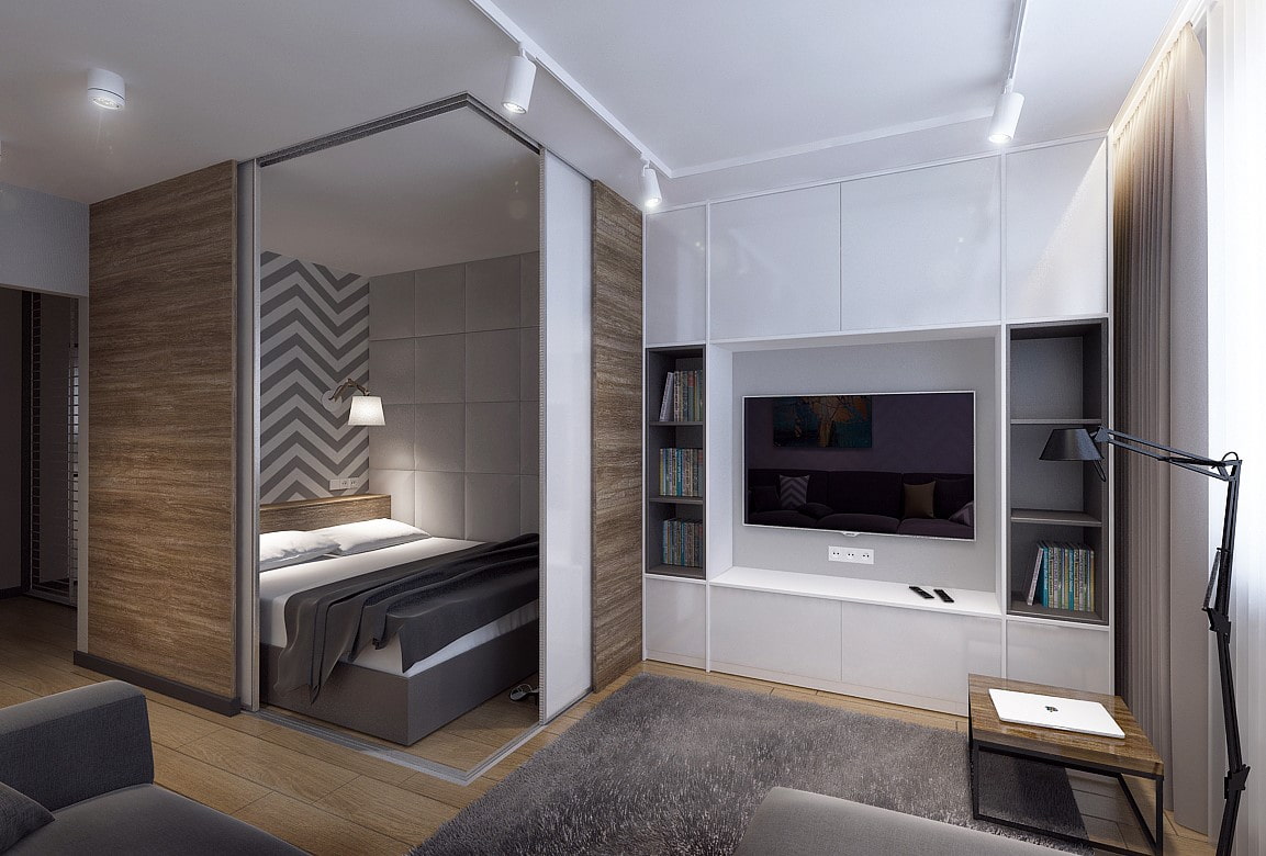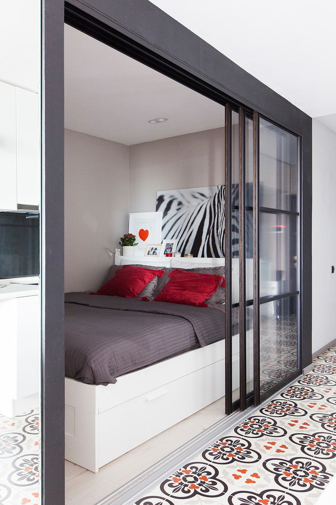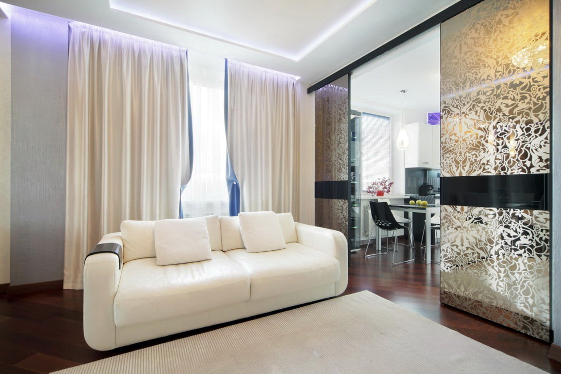 Bien sûr, des cloisons coulissantes peuvent être installées dans n'importe quelle pièce, surtout s'il s'agit d'un très petit espace. L'essentiel est de prendre en compte les caractéristiques de la pièce, sa taille, son style et de penser avec compétence au zonage, qui sera réalisé précisément en raison de la cloison.