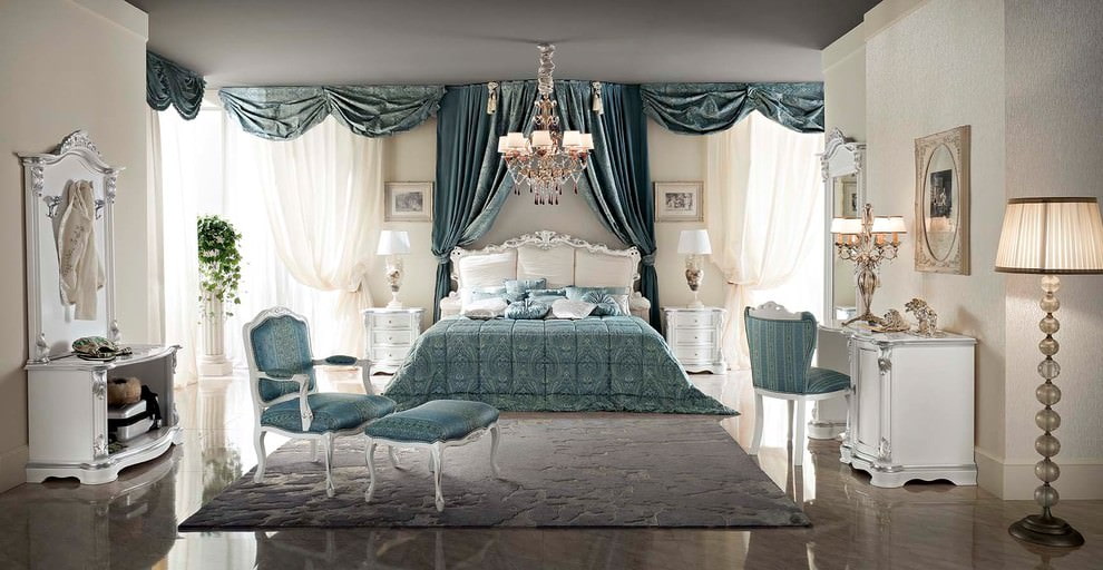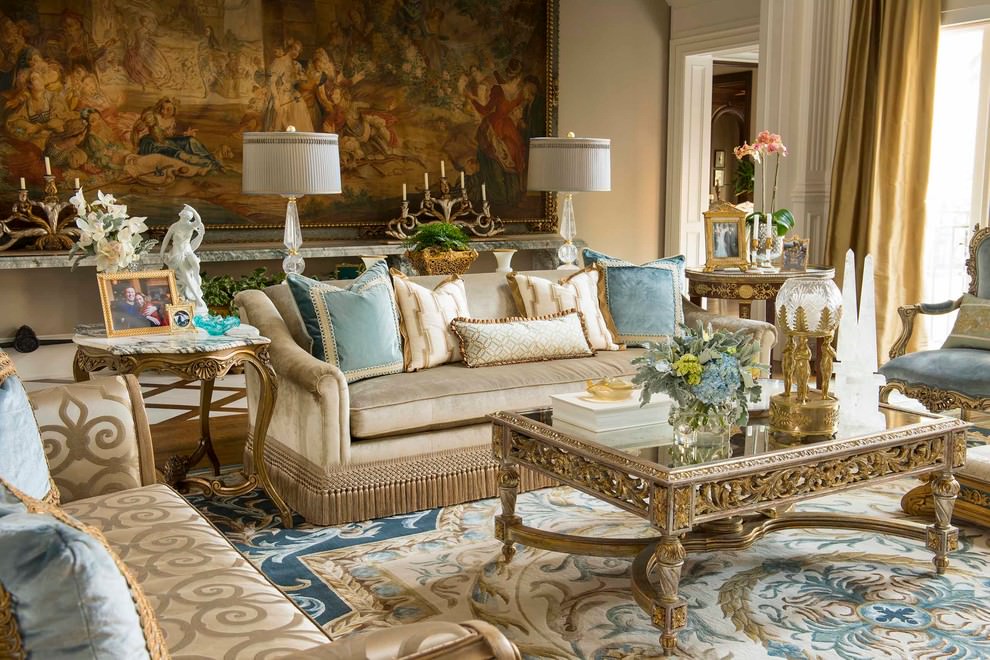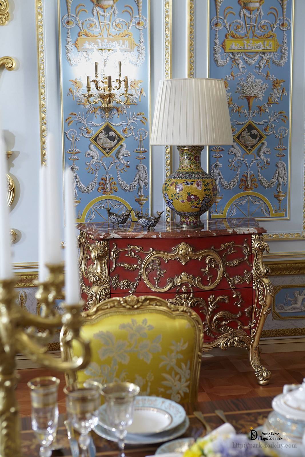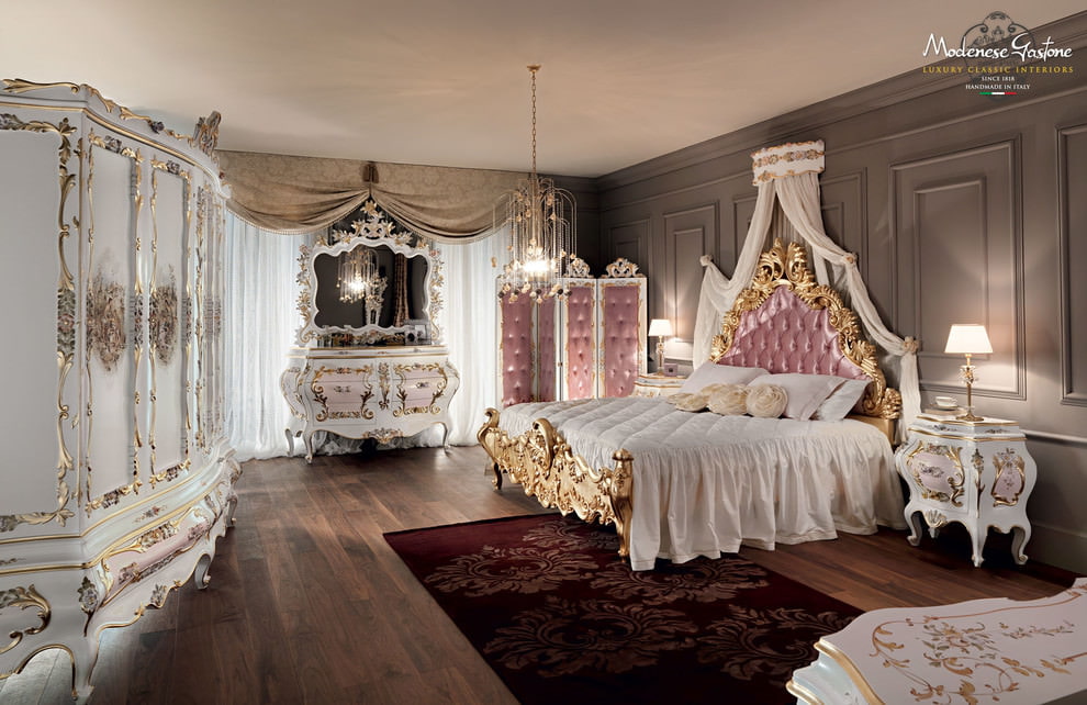 Vous ne pouvez pas utiliser des meubles standard pour créer un intérieur baroque, ce doit être une suite de luxe avec un revêtement naturel.