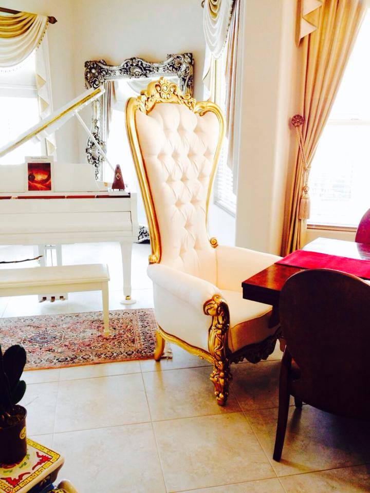 Le mobilier baroque est unique, avec de longues jambes torsadées et des garnitures en or.