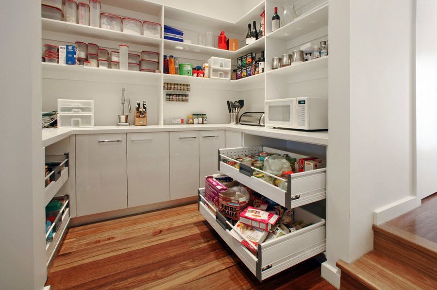 La disposition la plus populaire d'une cuisine dans une maison privée est en forme de U et en L. Le premier nécessite plus d'espace pour accueillir. Des boîtes sont installées autour du périmètre, et de gros équipements dans toutes les directions. Dans la deuxième version de la cuisine, les tiroirs avec un comptoir occuperont la moitié de l'espace, et la deuxième partie sera occupée par un réfrigérateur, une cuisinière et un évier.