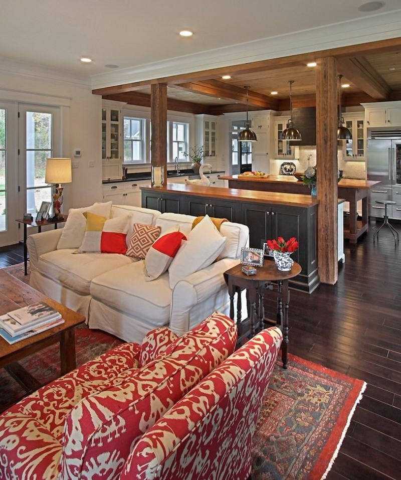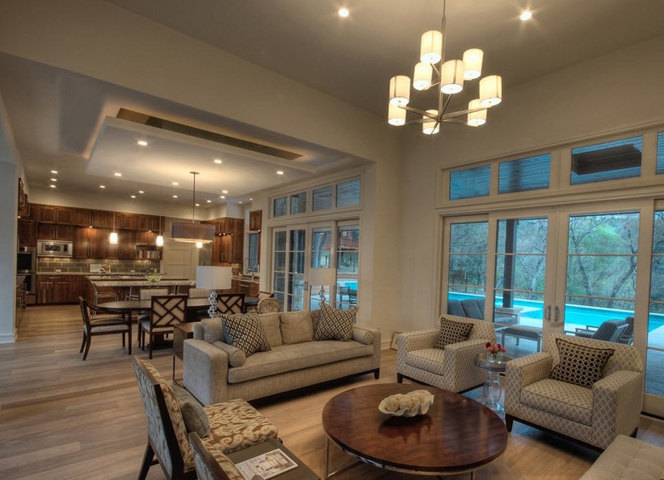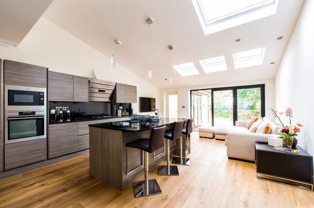 Il doit être adapté à la taille des pièces. Habituellement, une grande pièce avec des fenêtres est utilisée sous le salon. Le salon recevra beaucoup de lumière, et en raison de l'espace, vous pouvez zoner la pièce.