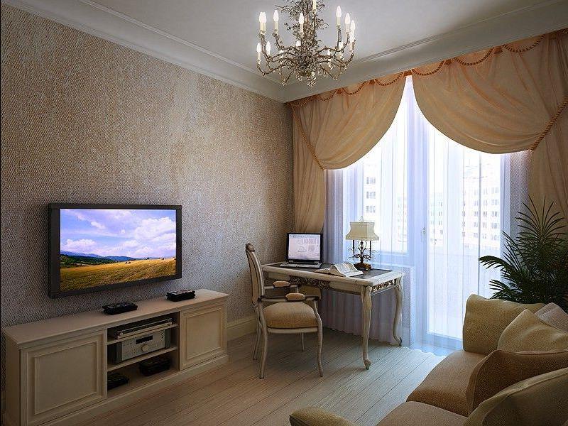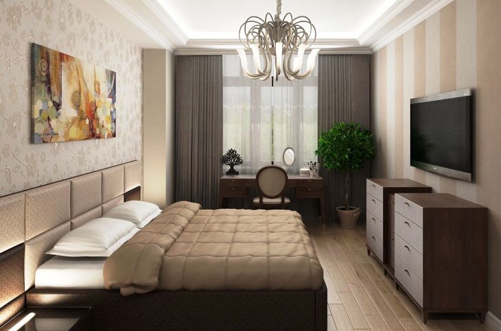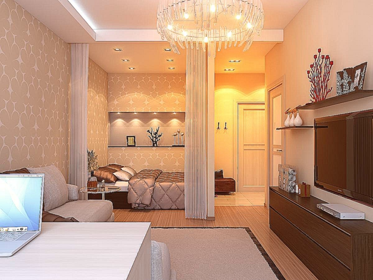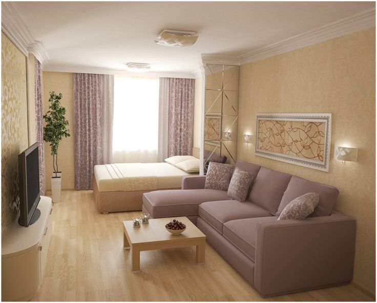 Dans le salon / chambre combiné, un canapé de taille moyenne aura fière allure. De l'autre côté, vous pouvez mettre un grand lit.