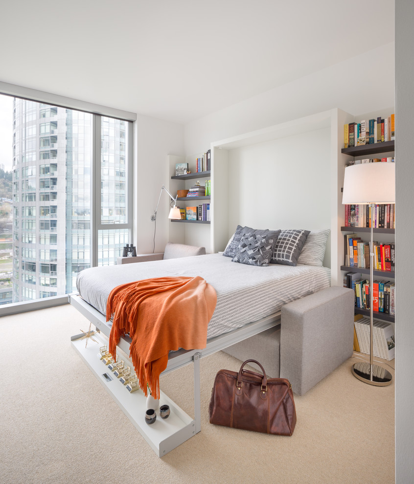 Et la nuit, le placard se ferme et le lit se penche en arrière - la pièce se transforme en chambre