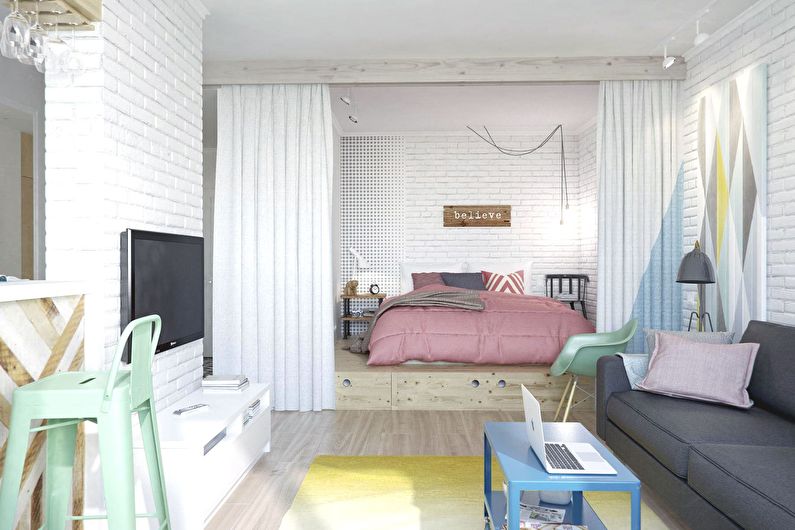 L'intérieur d'un appartement d'une pièce doit être multifonctionnel en premier lieu