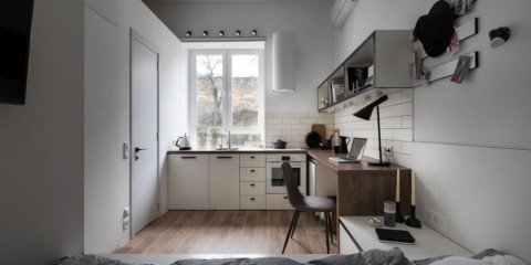 Les appartements d'une pièce ne sont pas très généreux au mètre carré, mais ils ont encore une place pour la mise en œuvre des idées de design