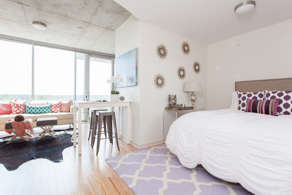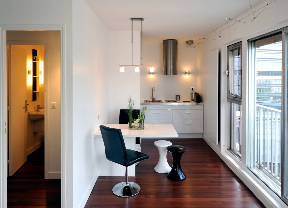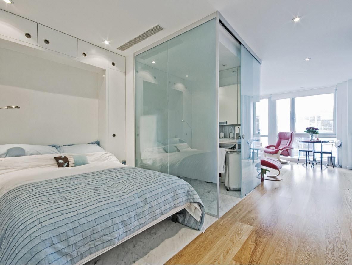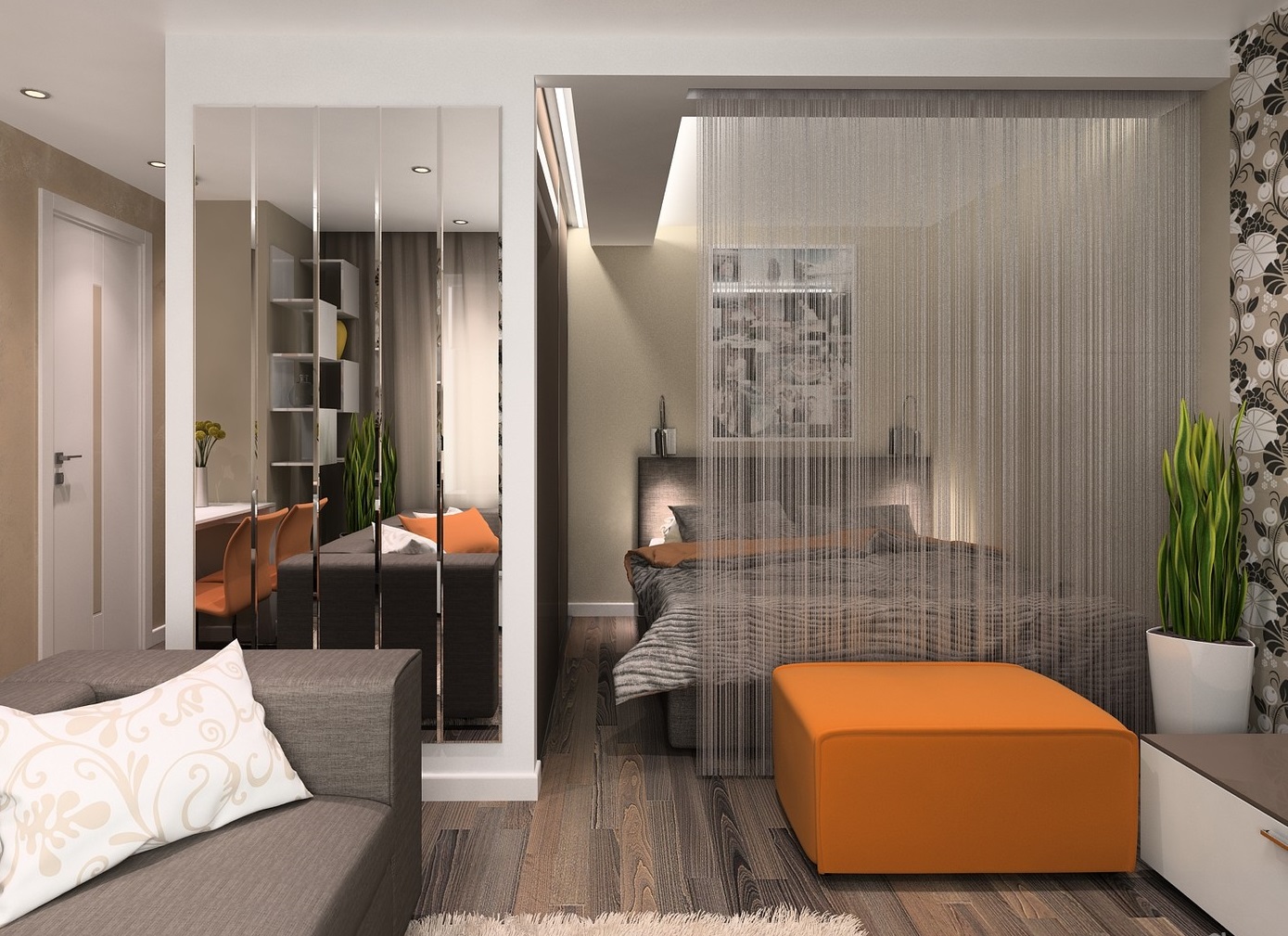 Ayant fait preuve d'un minimum d'effort et d'imagination, vous pouvez facilement transformer un appartement d'une pièce en une pièce kopeck spacieuse. Un grand miroir augmentera visuellement la surface. En utilisant des cloisons sèches, vous obtenez une île distincte. Si vous souhaitez masquer la chambre de la vue générale, utilisez un écran. Dans le cas d'un balcon - c'est la possibilité d'un espace de travail semi-fermé. Les portes coulissantes vous aideront avec un espace détente. Besoin d'espace - des nuances claires dans la finition.