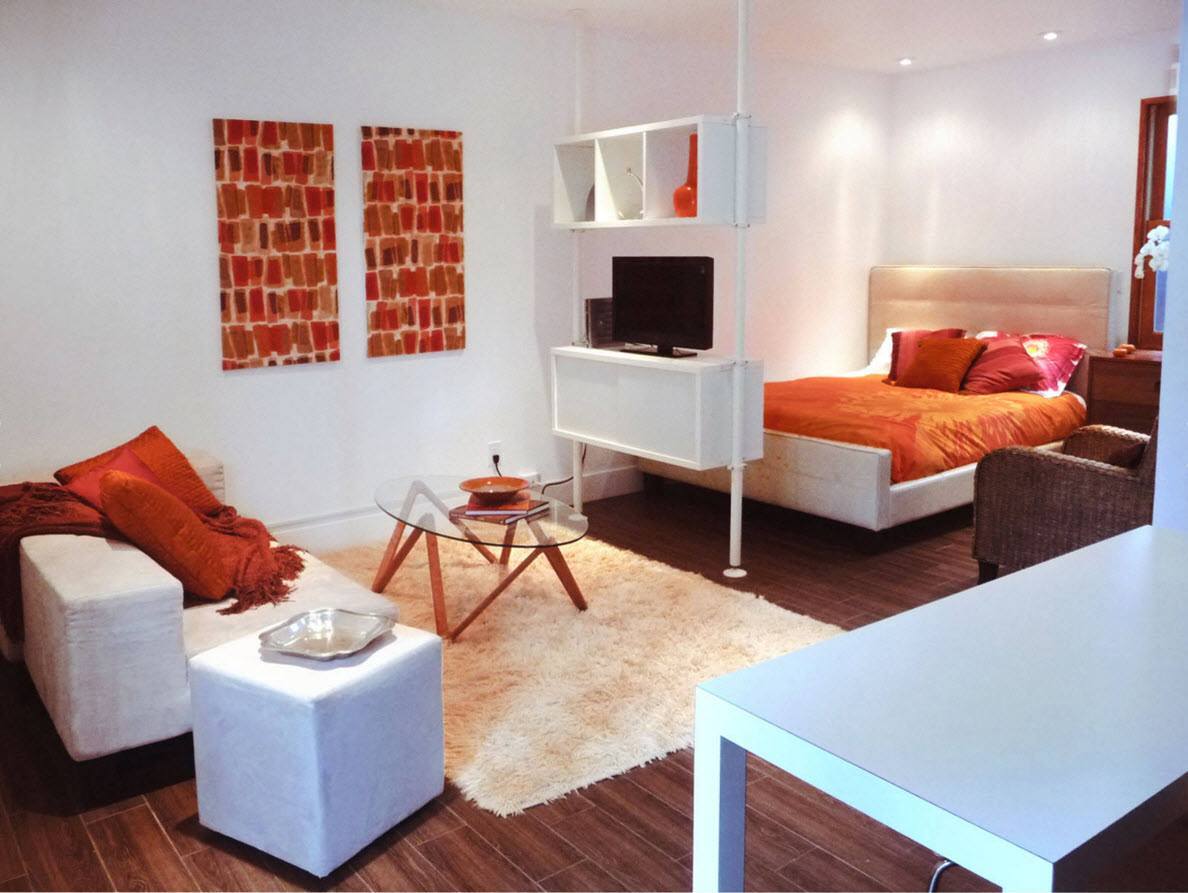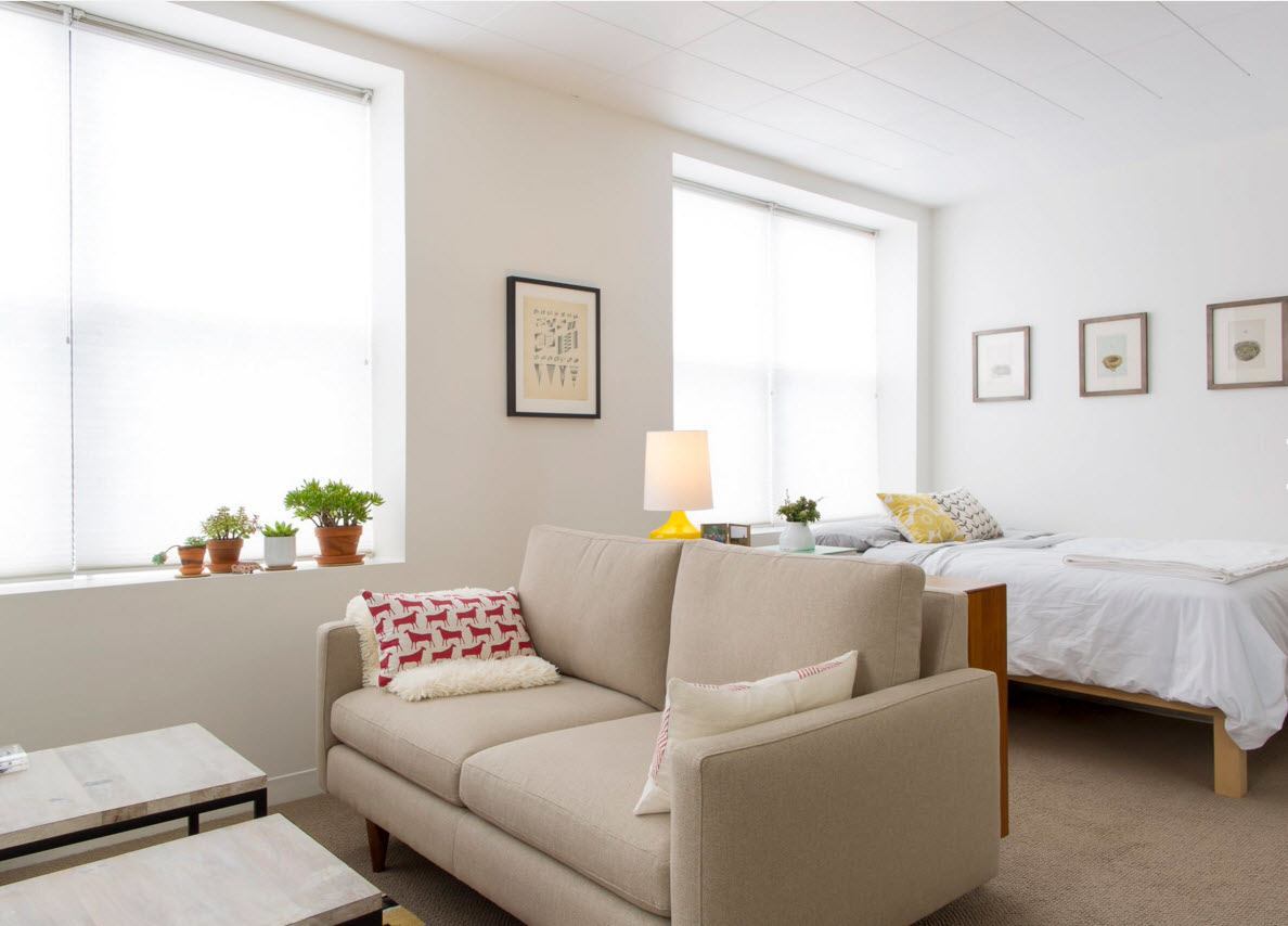 Connaissant certaines des nuances de la sélection de meubles, vous pouvez l'organiser de manière organique dans n'importe quel carré. Le facteur principal dans un studio est la fonctionnalité.Chaque coin doit être utilisé au maximum sans meubles inutiles.