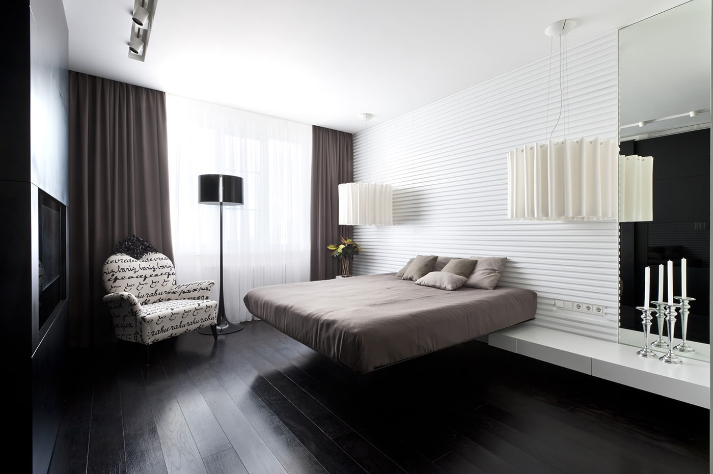 La combinaison de styles modernes avec un sol stratifié à l'intérieur de la pièce