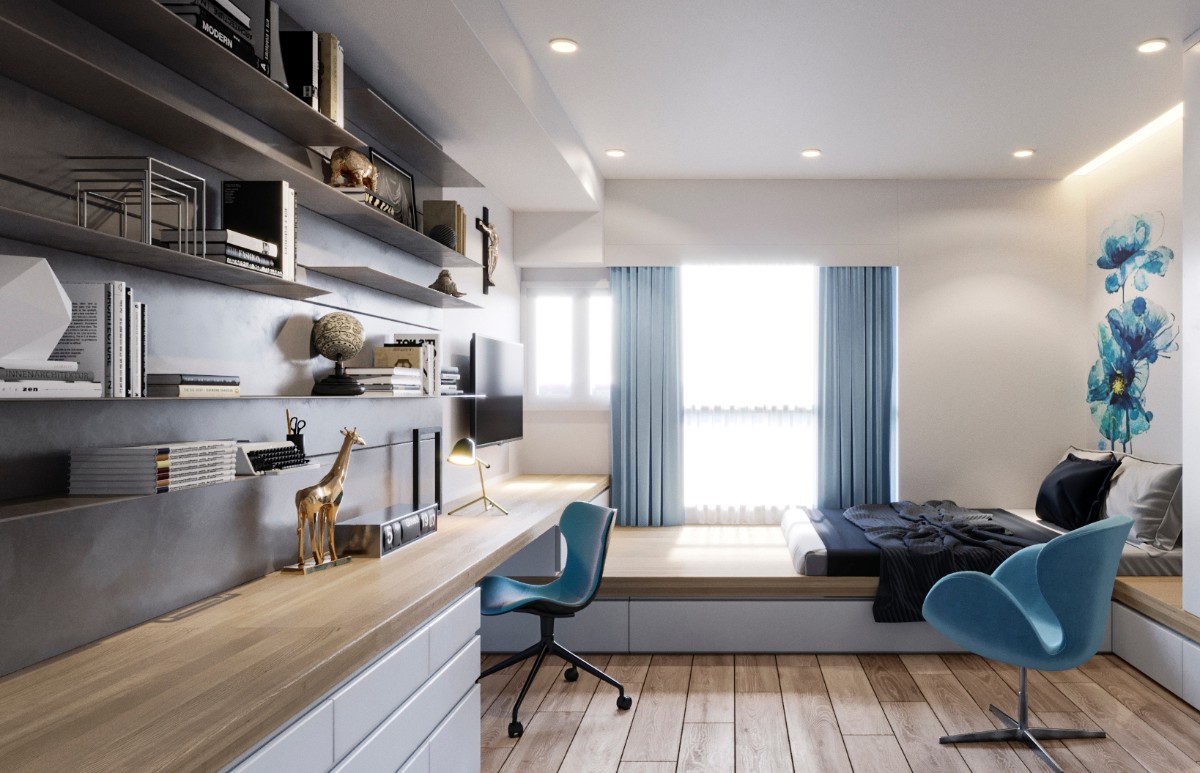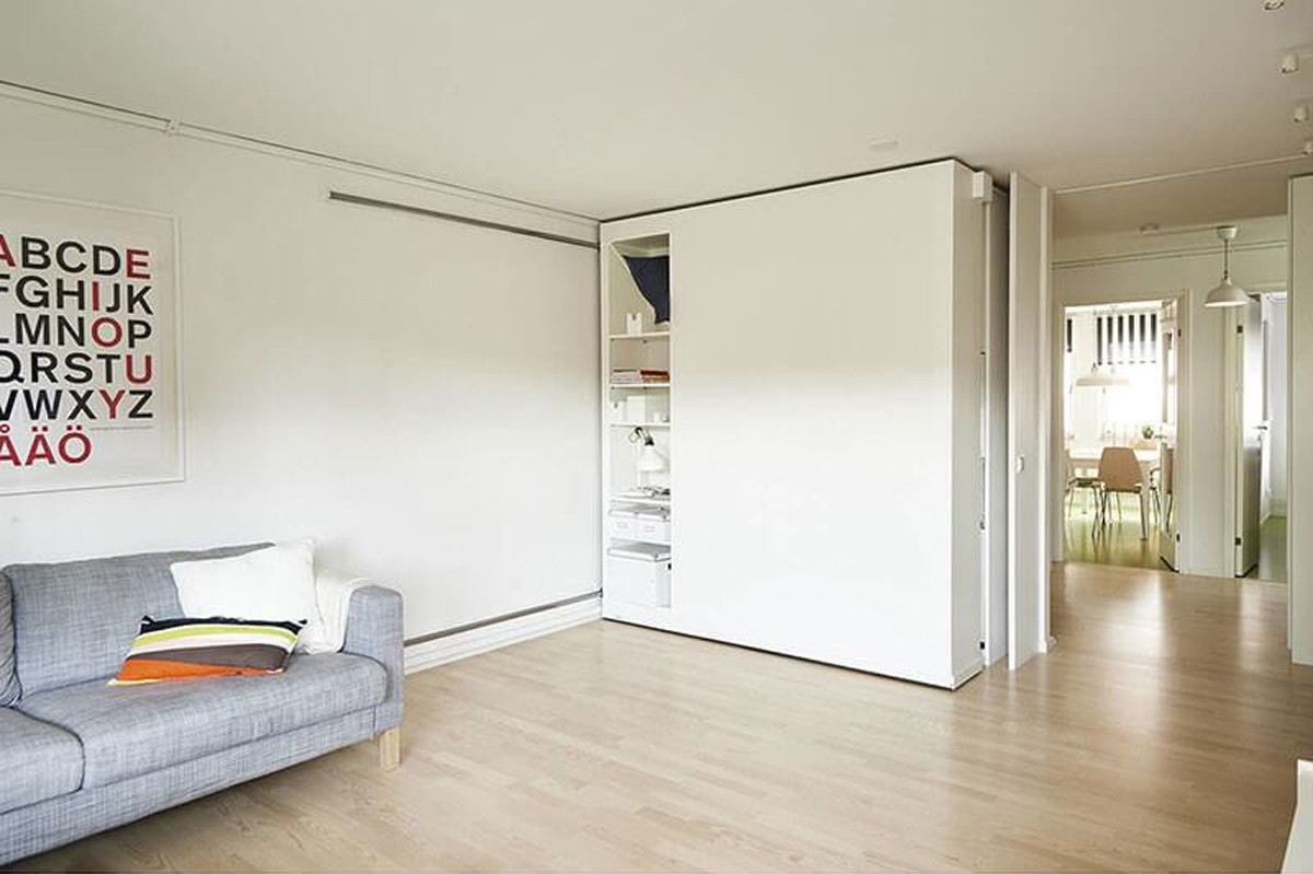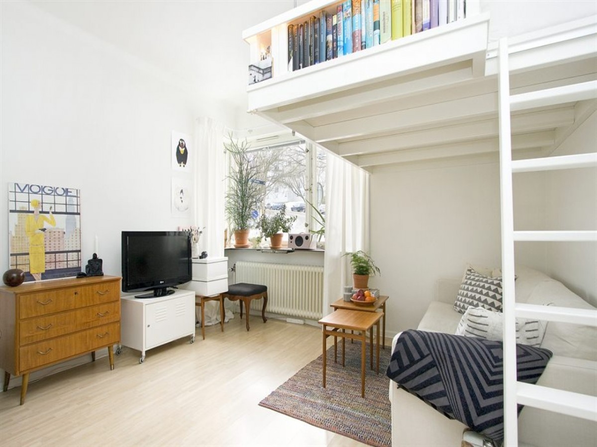 Pour ceux qui apprécient le confort et la vie mesurée, la plupart de la pièce peut être réservée à une chambre avec un lit confortable, une armoire et d'autres systèmes de stockage.