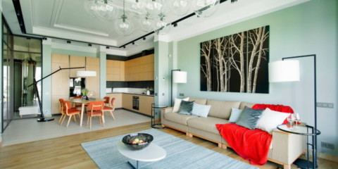 - Un immense espace qui transforme complètement le logement, en créant une sorte de symbiose de différents styles adaptés à de tels volumes.