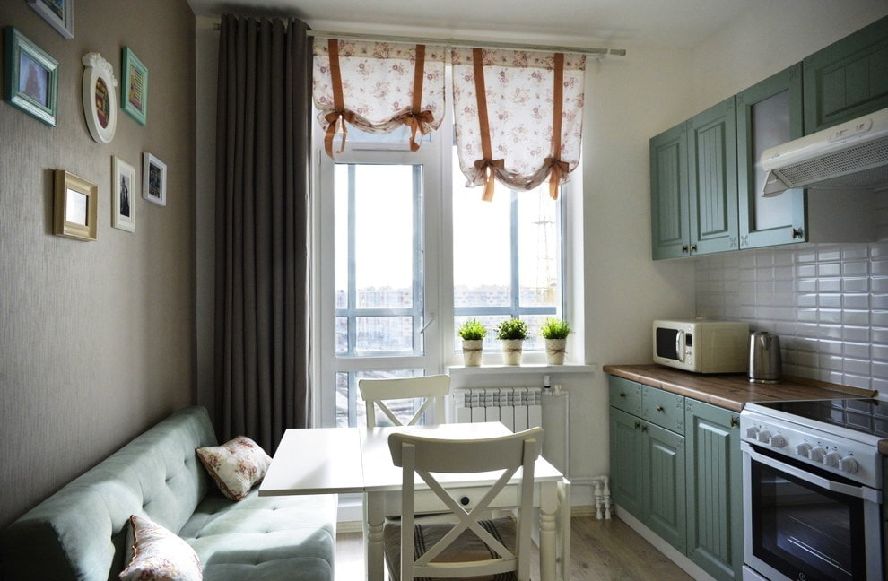 Dans une petite cuisine, il est conseillé d'utiliser le rebord de la fenêtre comme surface de travail ou salle à manger