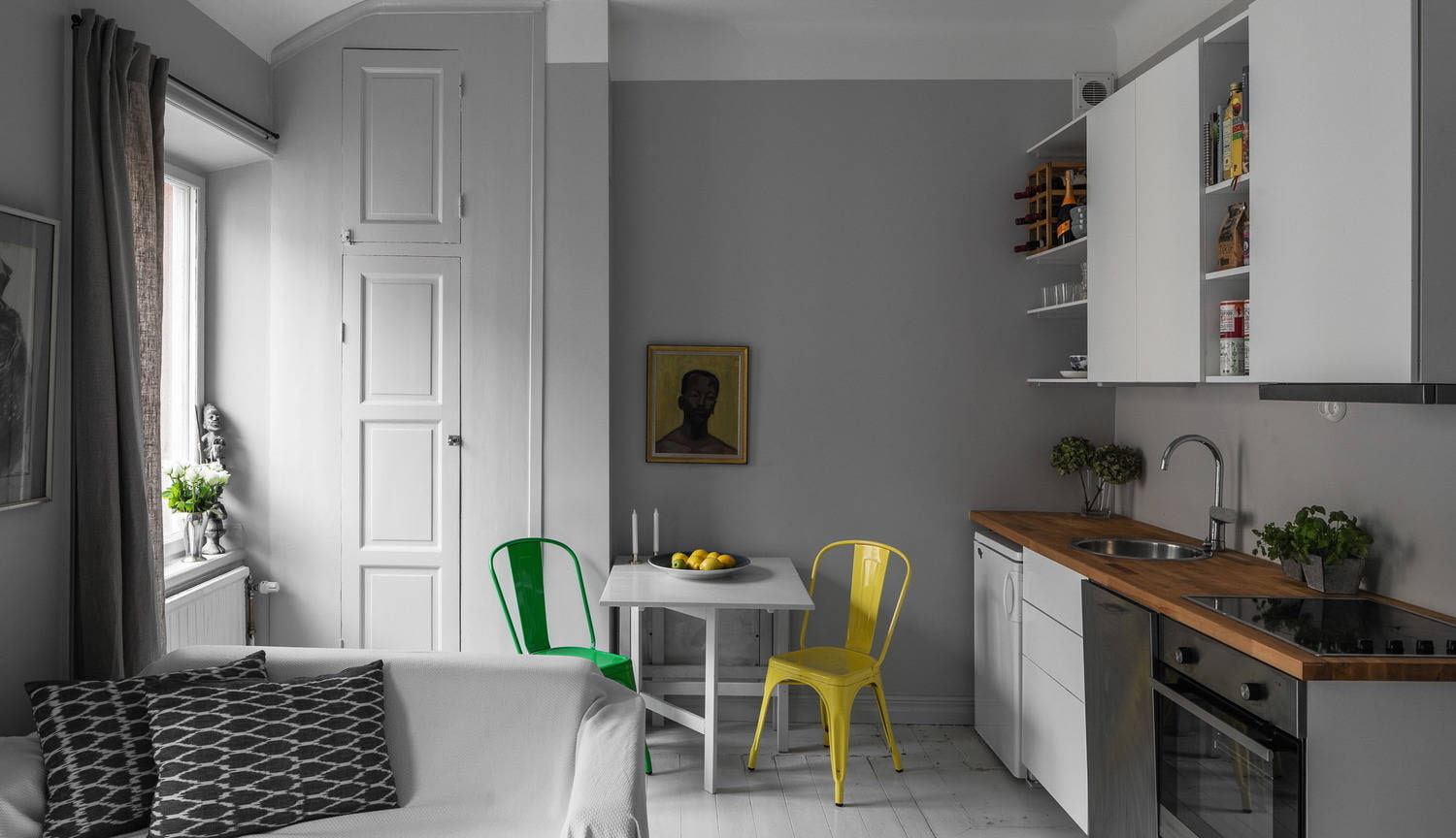S'il s'agit d'un appartement pratique, la cuisine doit contenir tout ce dont vous avez besoin. Une petite surface de travail et un maximum d'équipements utiles au foyer.