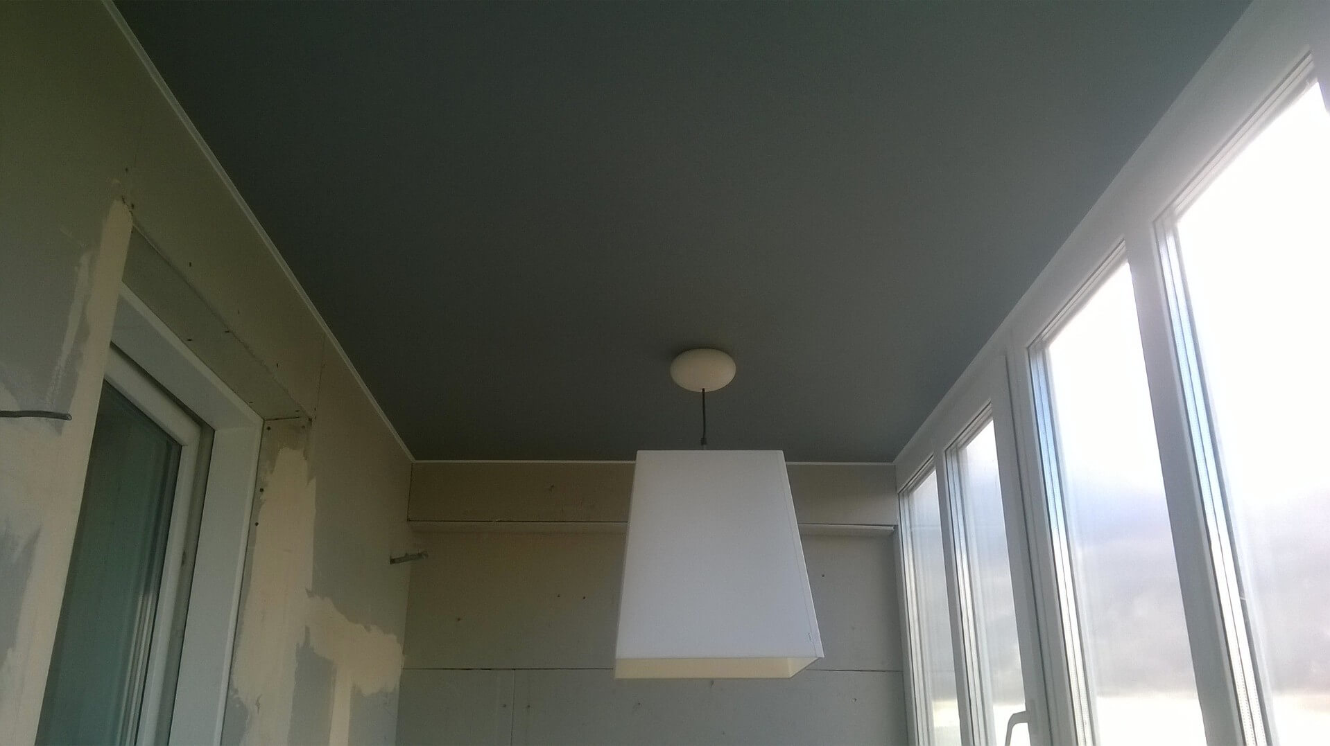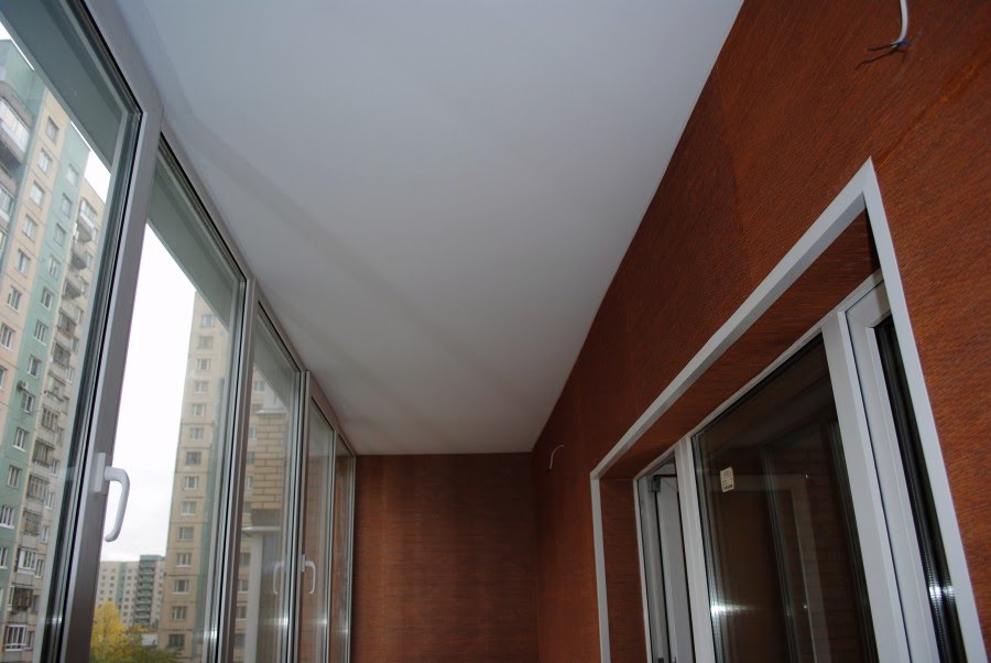 Cette méthode de décoration du plafond sur le balcon ne peut pas être qualifiée de plus populaire et, néanmoins, dans les espaces isolés, elle a le droit d'exister.