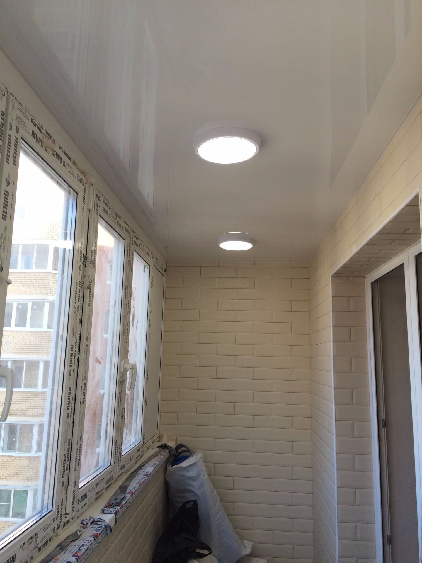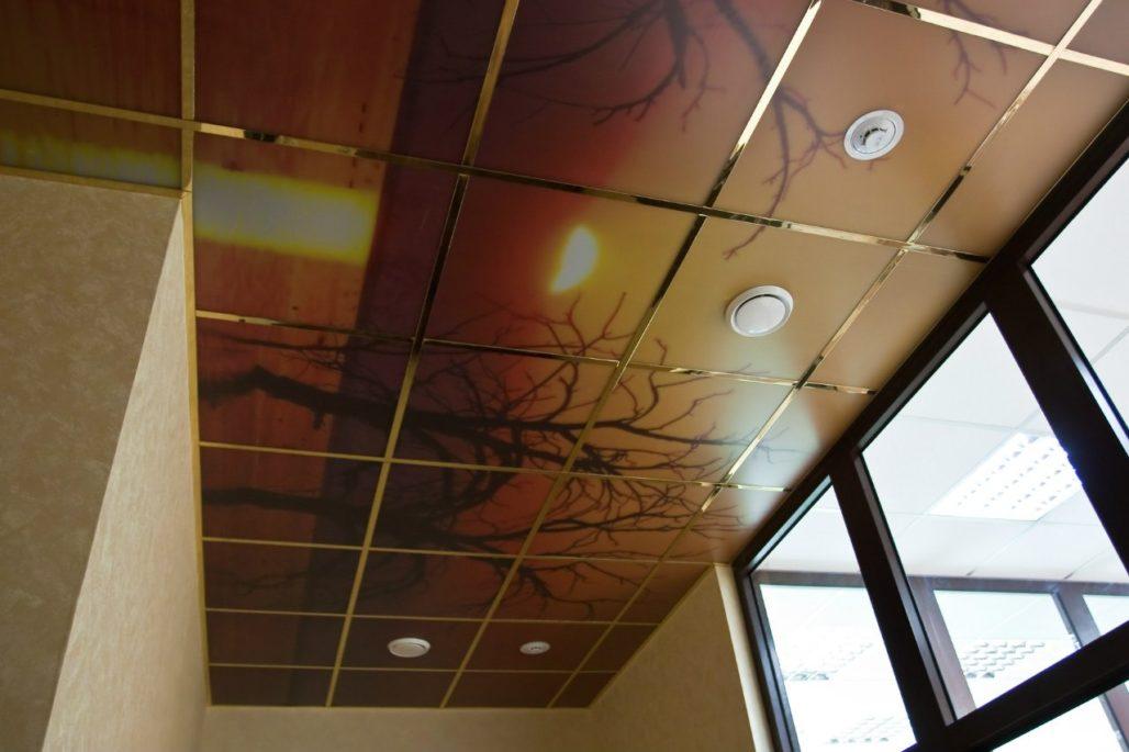 Si vous le souhaitez, l'intérieur du balcon peut être décoré d'un plafond tendu avec impression photo