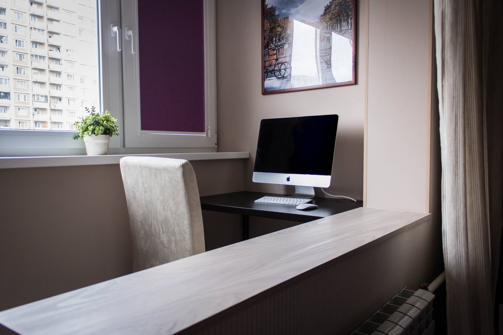 Lieu de travail confortable sur le balcon combiné avec la cuisine