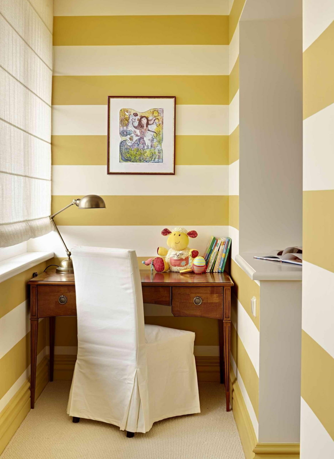 Un coin cosy pour un jeune artiste sur une loggia attenante à la chambre des enfants