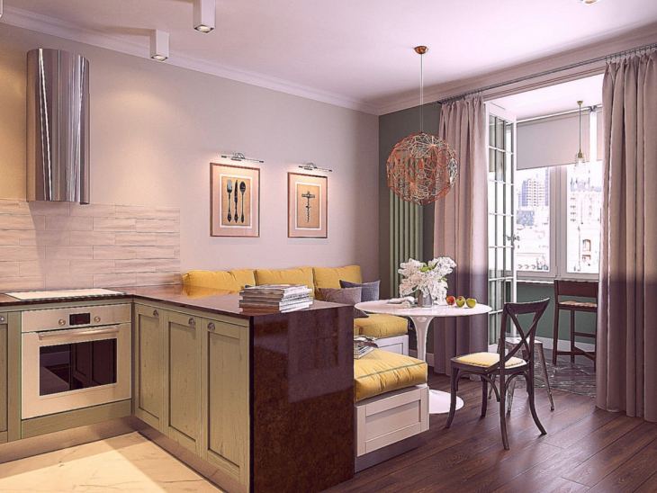 Combiner une cuisine avec un balcon ou une loggia implique une expansion importante de l'espace