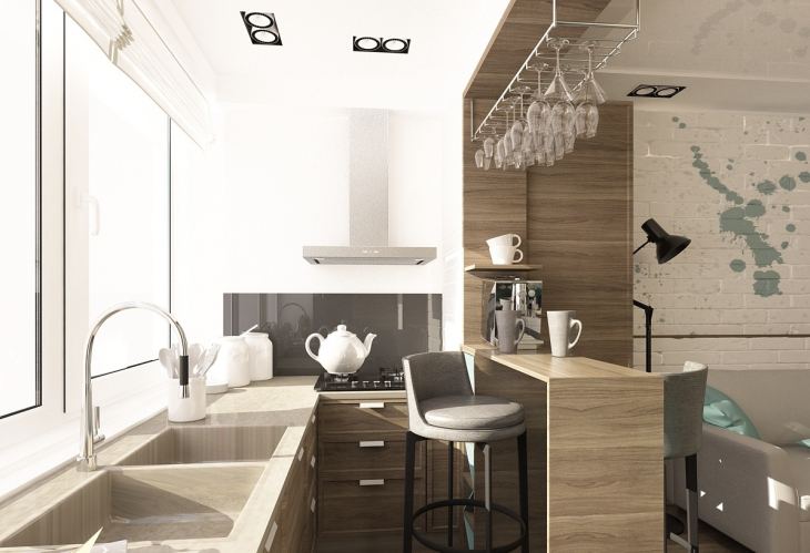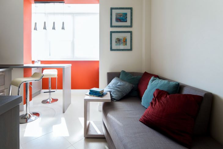 C'est une autre façon pratique de rendre l'intérieur inhabituel et confortable. Souvent, combinant une loggia et une cuisine, ils ne démontent pas complètement le mur, mais nettoient seulement la fenêtre. Le mur restant avec le rebord de la fenêtre est utilisé de différentes manières. Par exemple, quelqu'un aime exploiter cet espace comme un plan de travail, d'autres le voient comme un comptoir de bar, mais pour d'autres, c'est une armoire pratique et compacte où vous pouvez ranger n'importe quoi.
