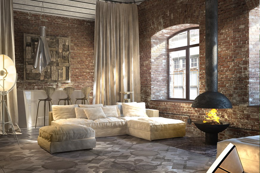 Le style loft implique l'absence de draperies diverses, ainsi que de papier peint, qui est remplacé par de la brique ou du plâtre.