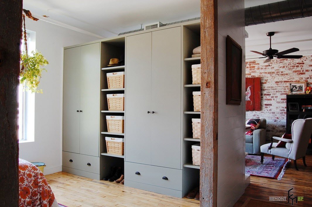 Avec un métrage encore plus grand, vous pouvez jouer avec de l'espace libre, autant que l'imagination le permet. Étant donné que le loft ne tolère pas les murs continus, il sera bon de clôturer un endroit pour dormir, par exemple, avec une bibliothèque sans mur arrière ni écran.