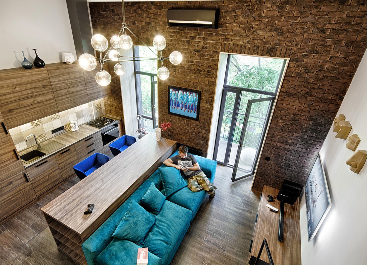 Pour créer un studio de style loft dans un appartement avec des plafonds bas, vous devrez abattre les murs et les cloisons pour ouvrir l'espace et l'agrandir visuellement.