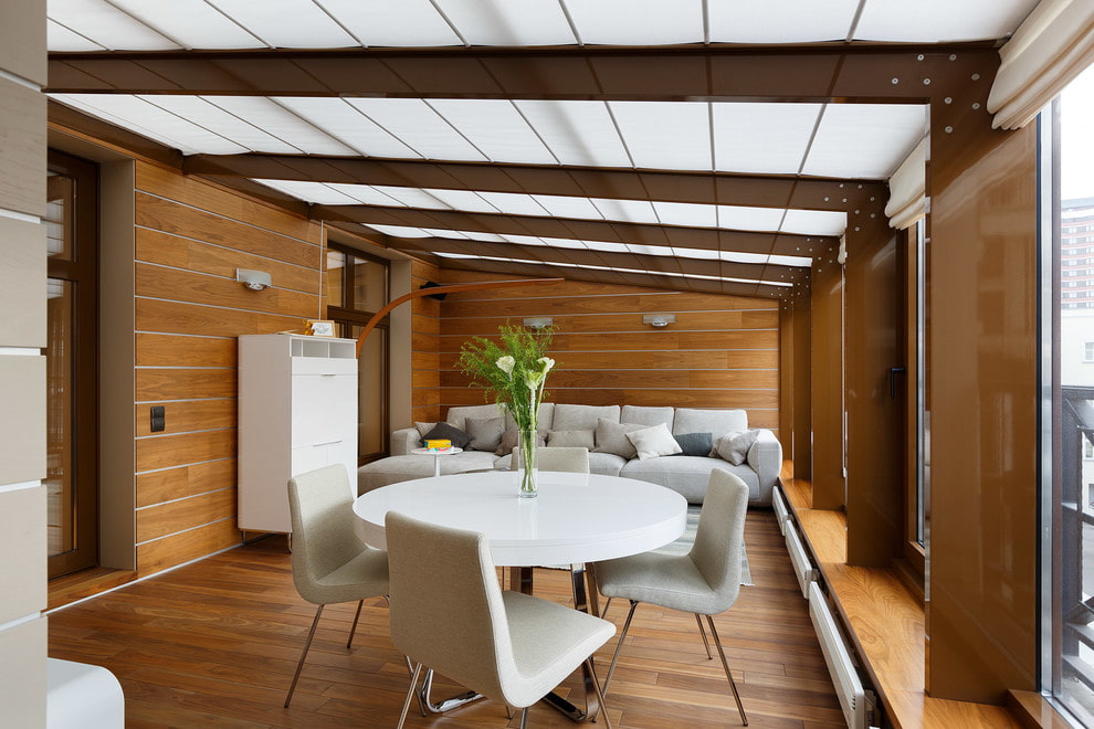 La doublure du plafond, en raison de la couleur douce et agréable du bois, forme un microclimat spécial et crée une atmosphère confortable propice à la détente.