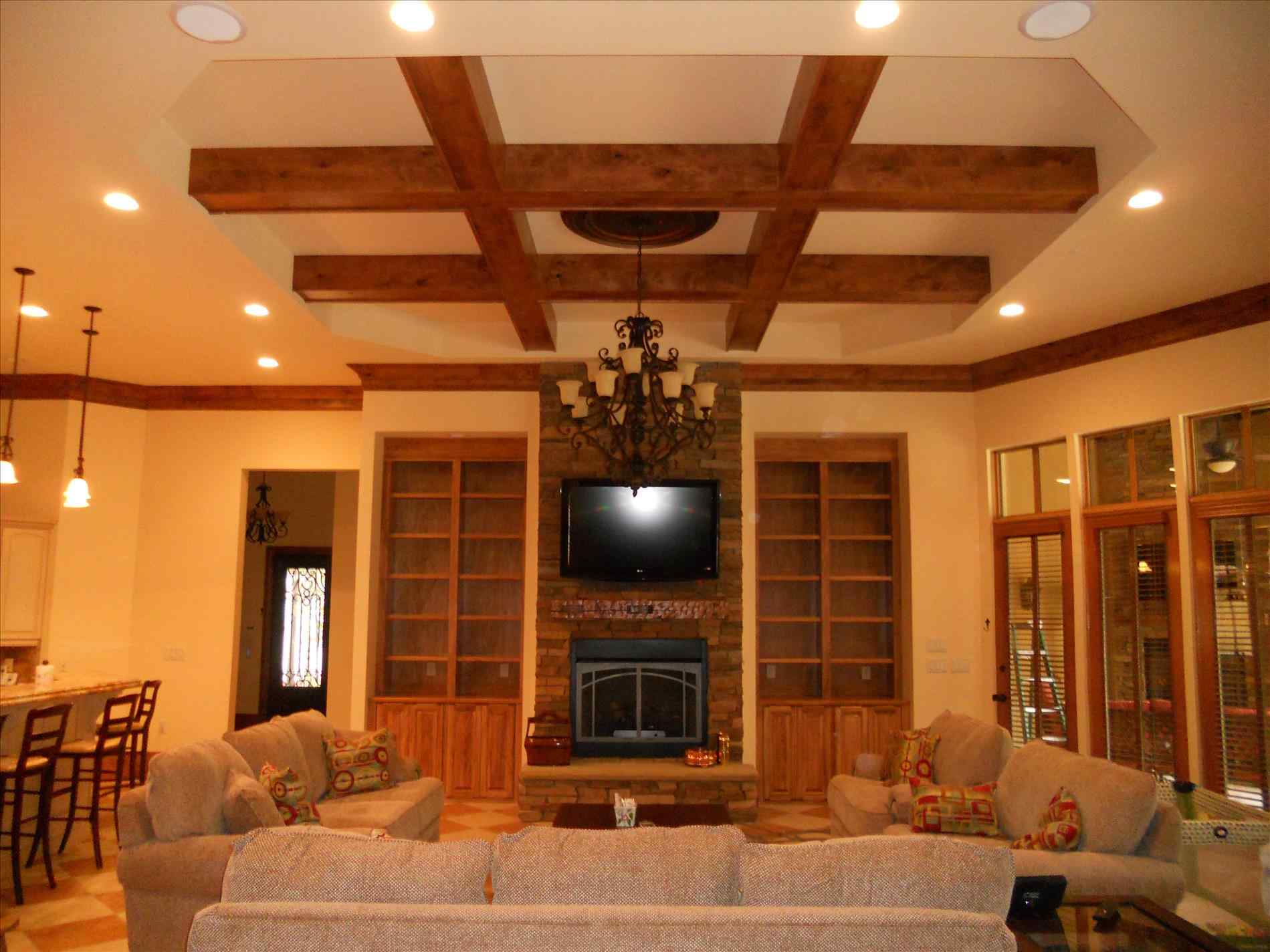 La photo montre une vue des cloisons sèches d'un plafond figuré à l'intérieur du salon.
