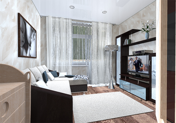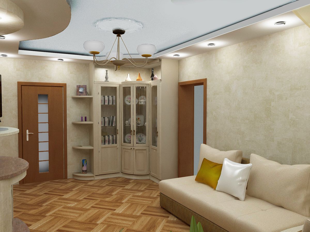 - Grand salon. Khrouchtchev a un salon relativement grand, mais il peut être agrandi même par l'une des chambres. Un tel changement rendra la pièce plus spacieuse et plus légère. Il existe également de nouvelles possibilités de conception.