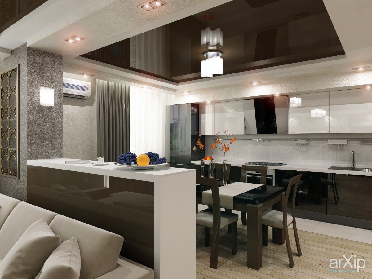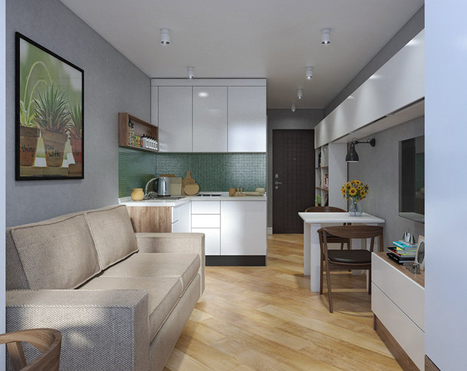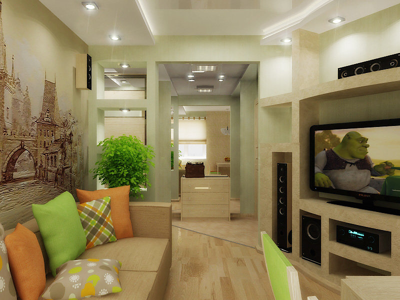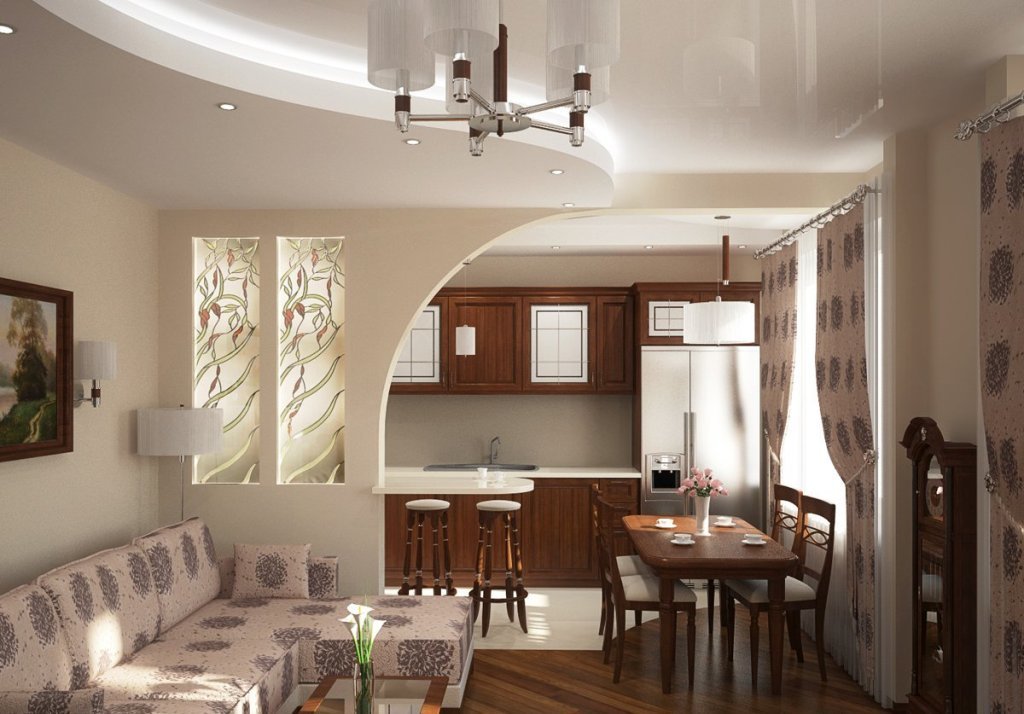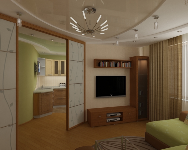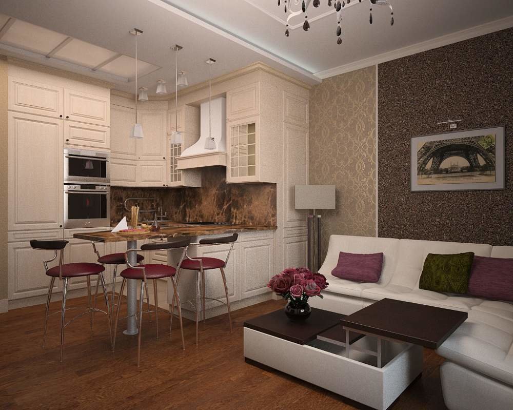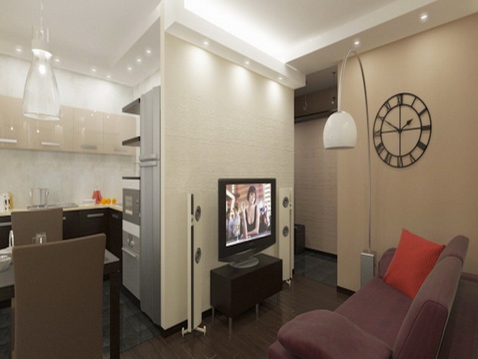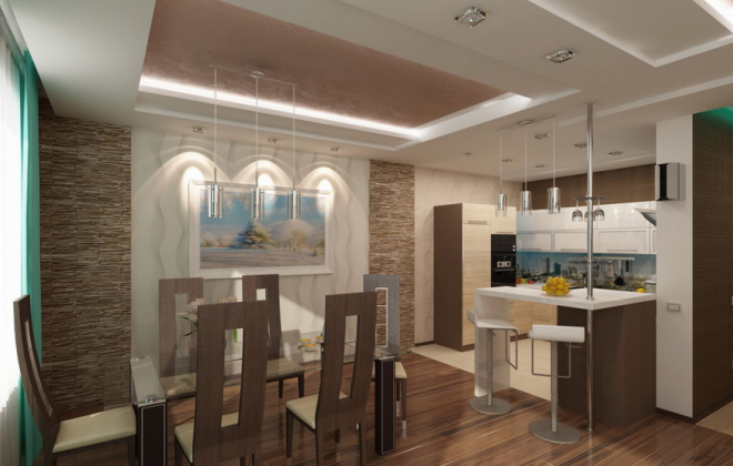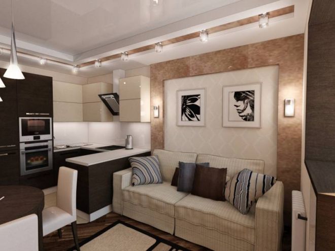 Si le salon est situé près de la cuisine, vous pouvez supprimer le mur entre ces pièces.