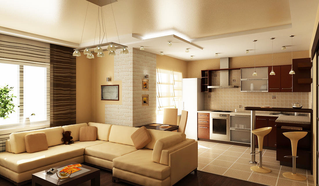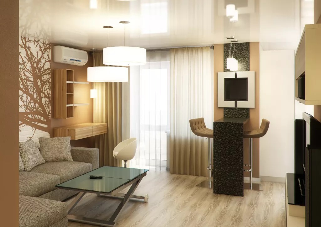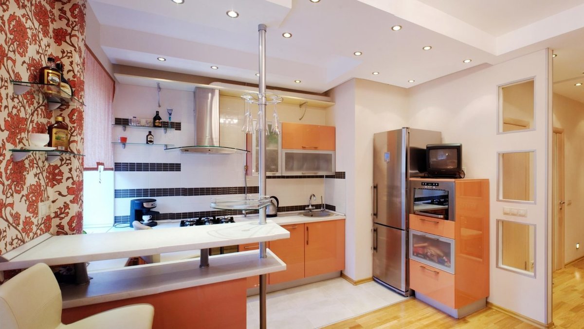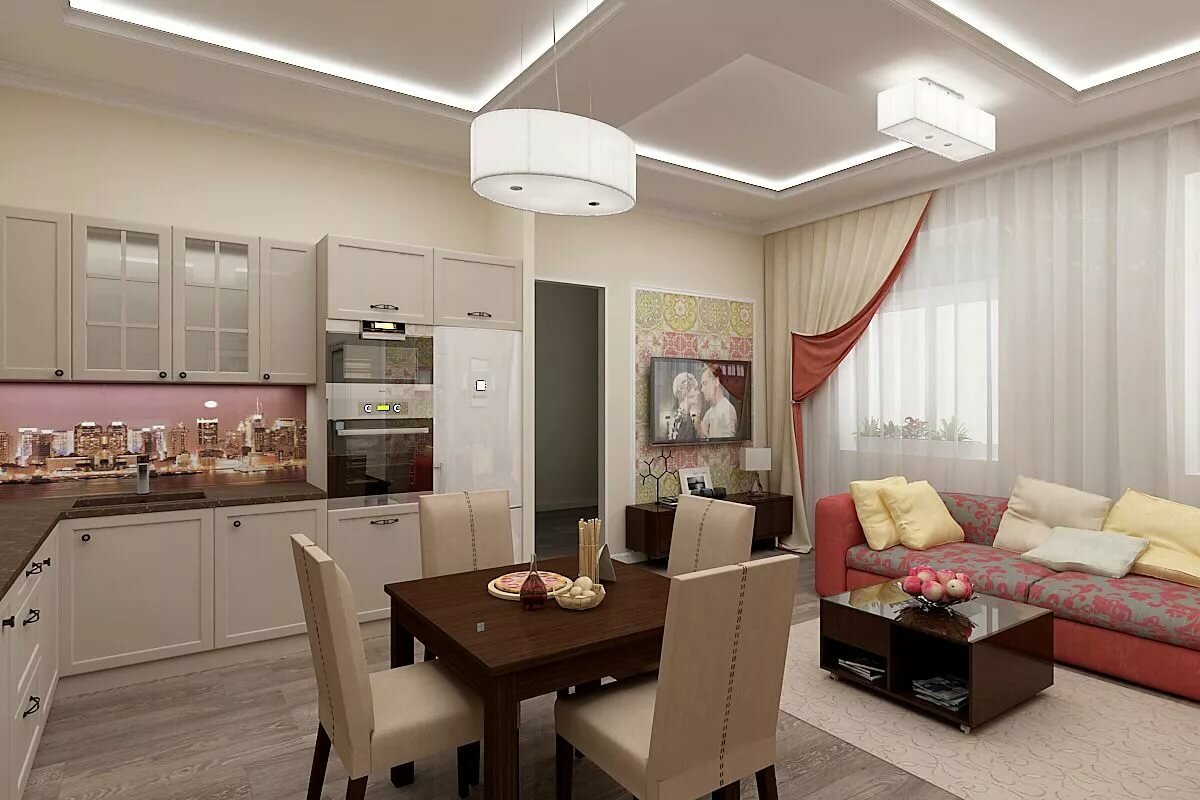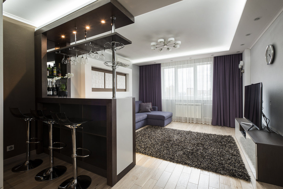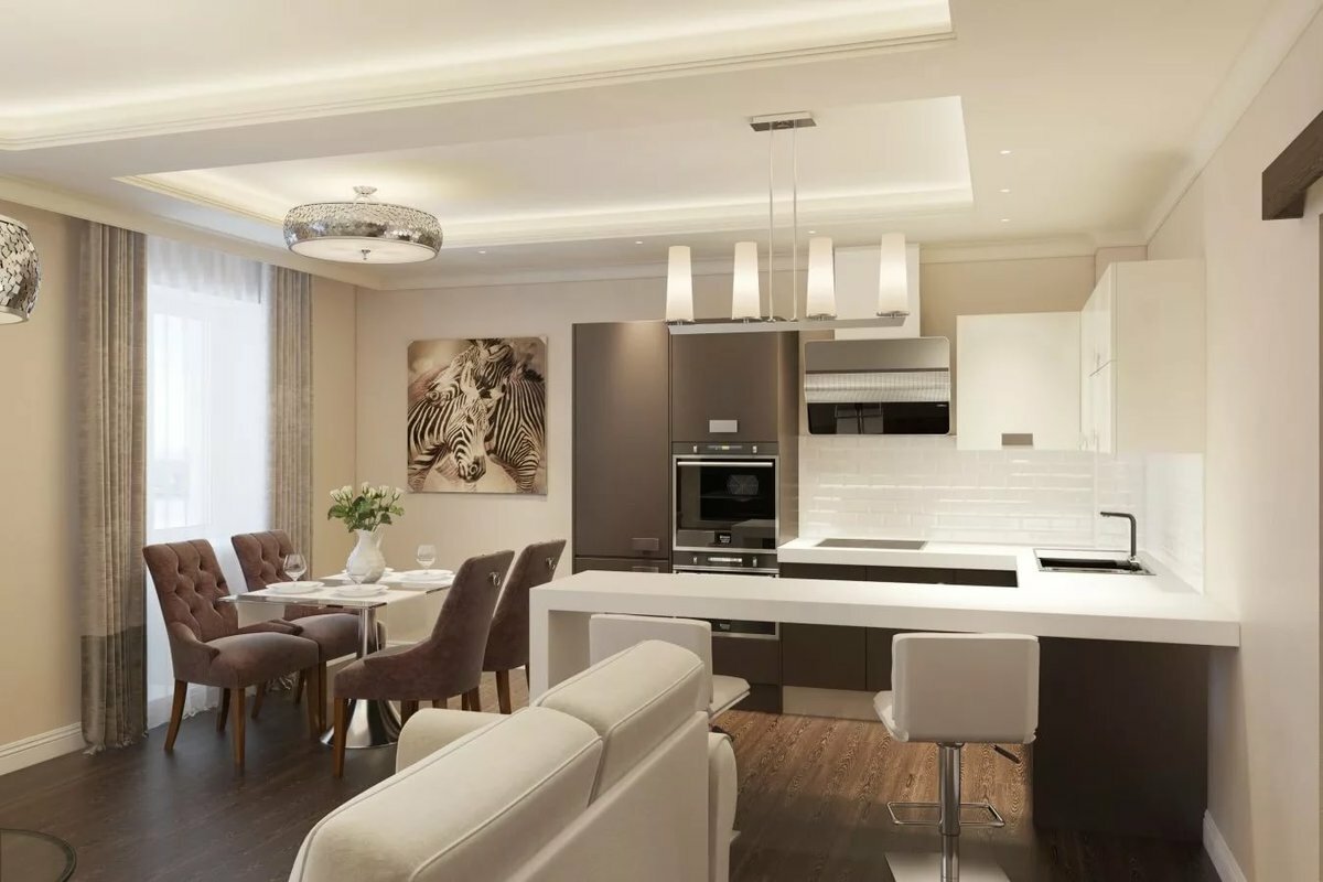 Si le salon est situé près de la cuisine, vous pouvez supprimer le mur entre ces pièces.