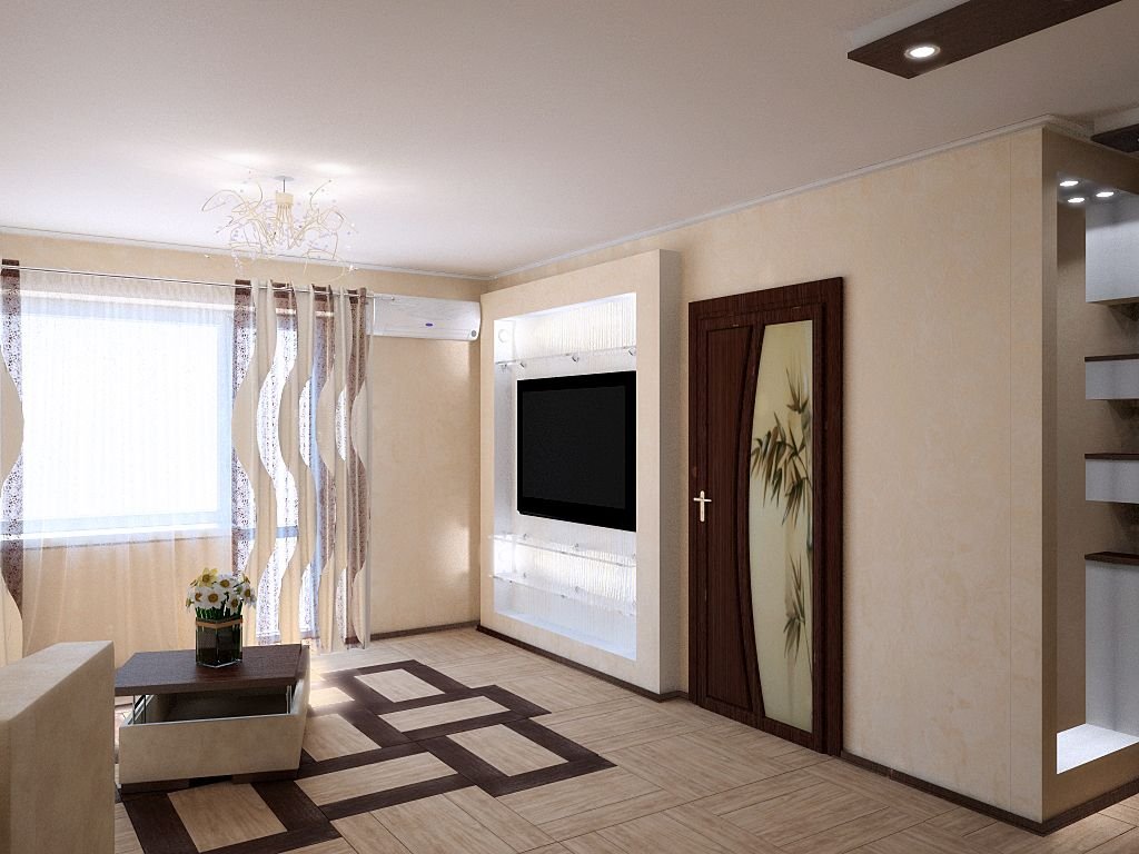 - Création d'un appartement de deux ou trois pièces. Ici, les cloisons entre toutes les pièces peuvent être supprimées et, si nécessaire, de nouvelles peuvent être installées. Cette option créera une disposition confortable pour votre séjour.