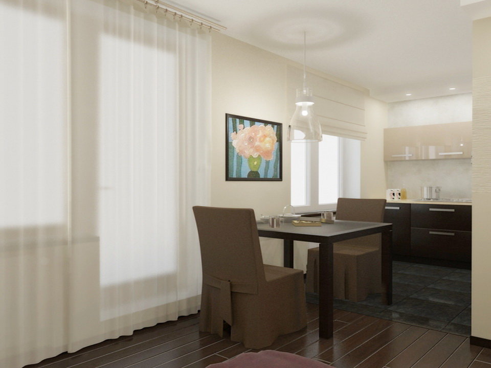 Vous pouvez faire une salle à manger à partir d'une pièce adjacente à la cuisine, la reliant à la cuisine avec une porte et attacher le couloir à la salle de bain.