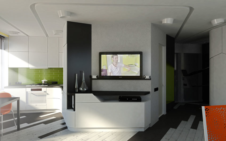 - l'appartement est équipé de meubles intégrés et multifonctionnels, ce qui est idéal pour les petites tailles.