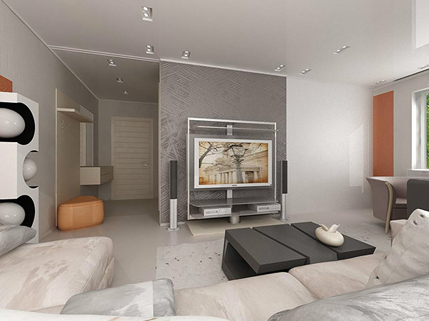 Vous pouvez agrandir un petit couloir. Cela se fait à l'aide de la démolition de la cloison qui la sépare du salon.