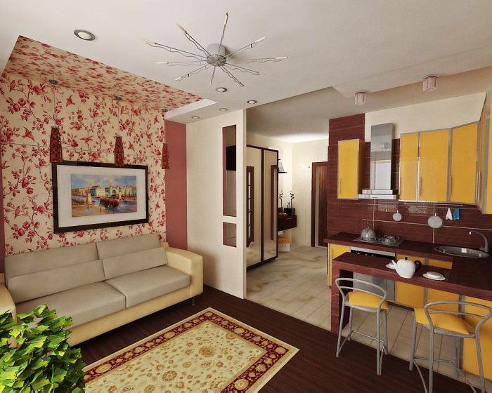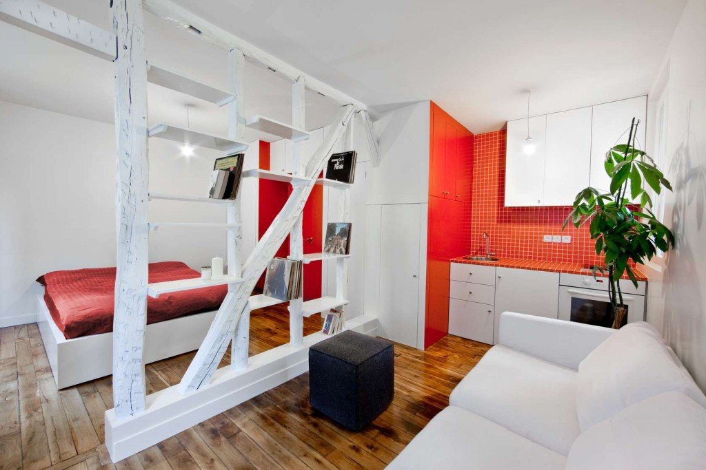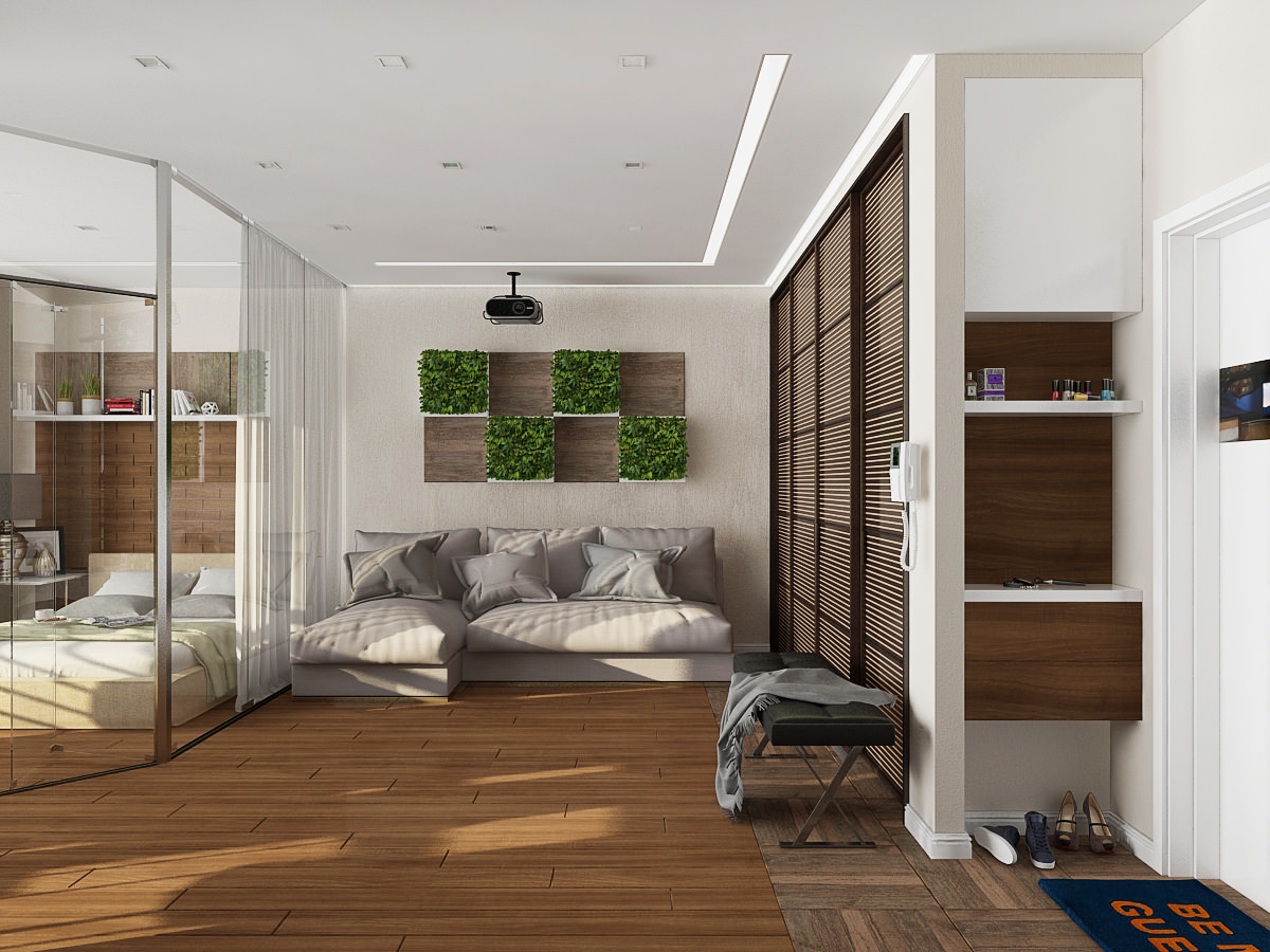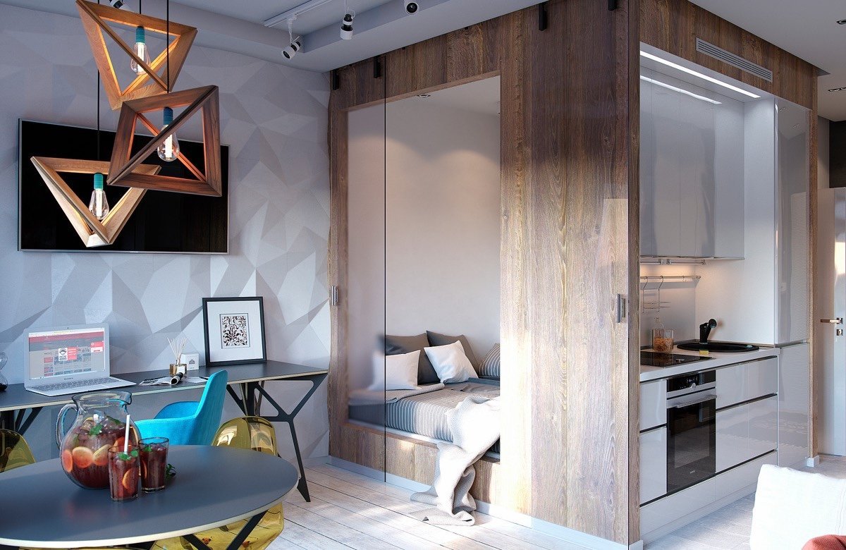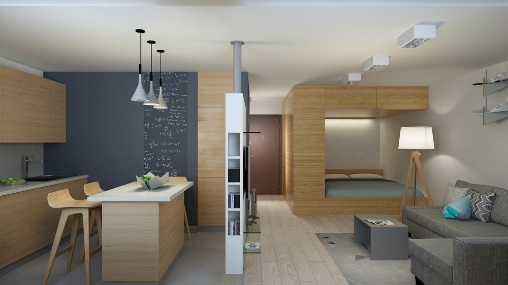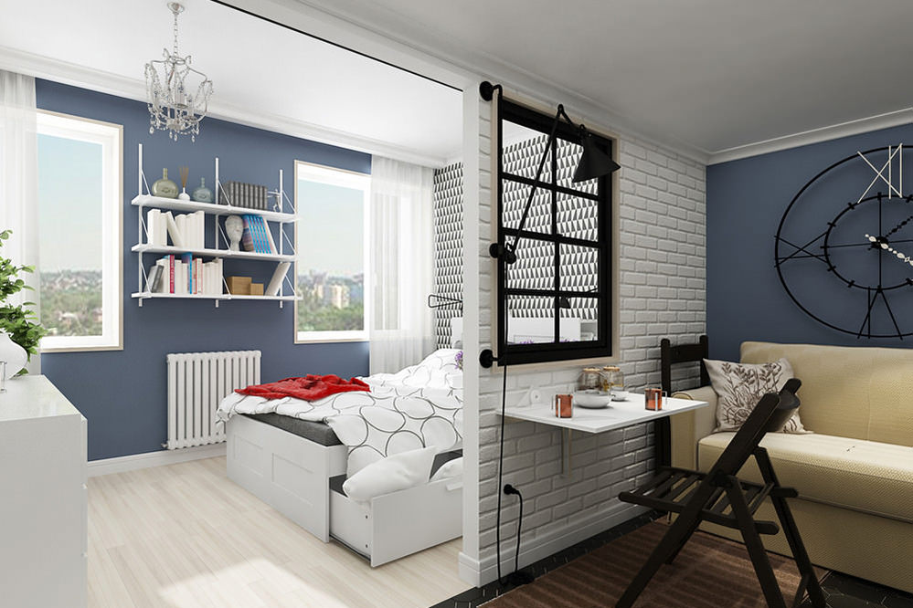 Pour un séjour confortable dans un petit appartement, il est nécessaire de diviser une pièce en plusieurs autres afin de créer l'apparence d'un appartement à part entière.