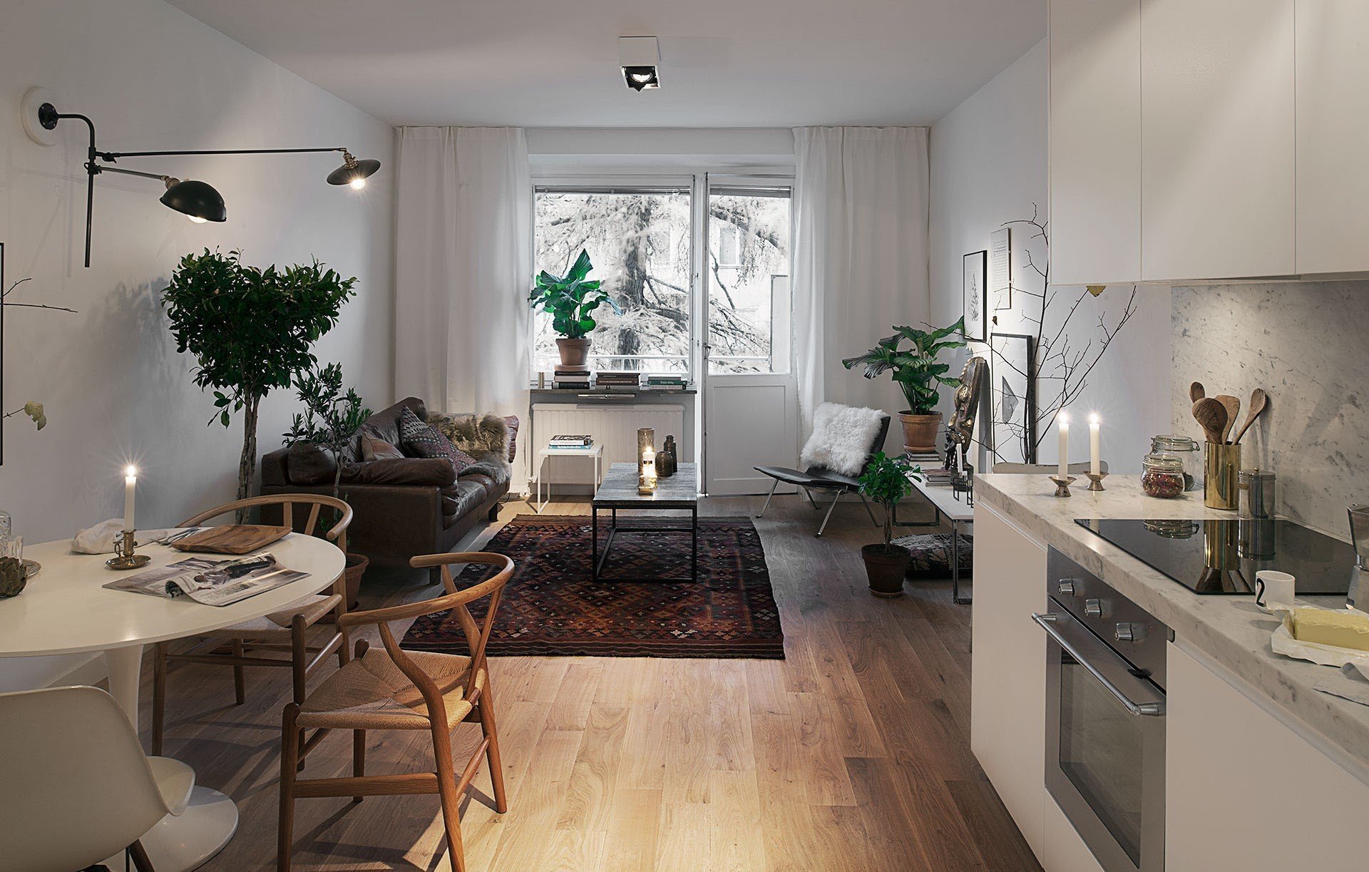 Dans le studio de design de 23 m², les photos sur les murs s'intégreront parfaitement à l'intérieur.
